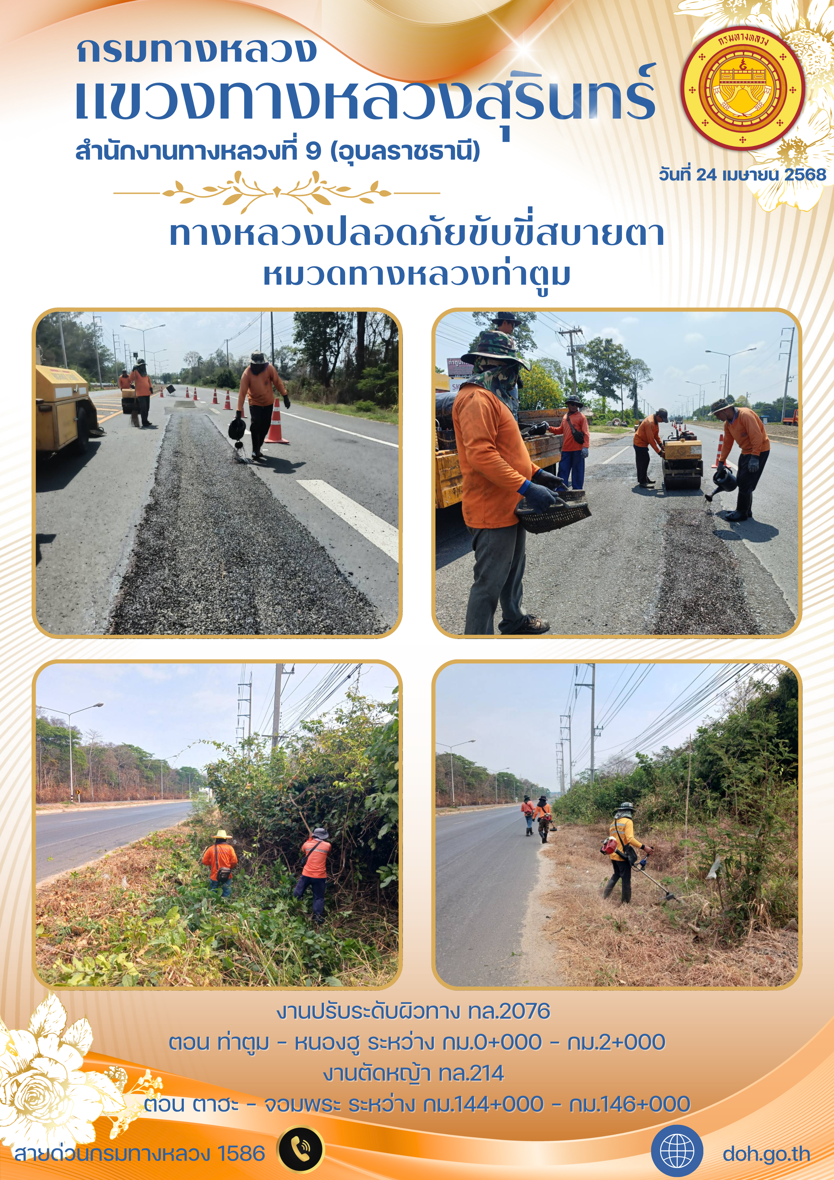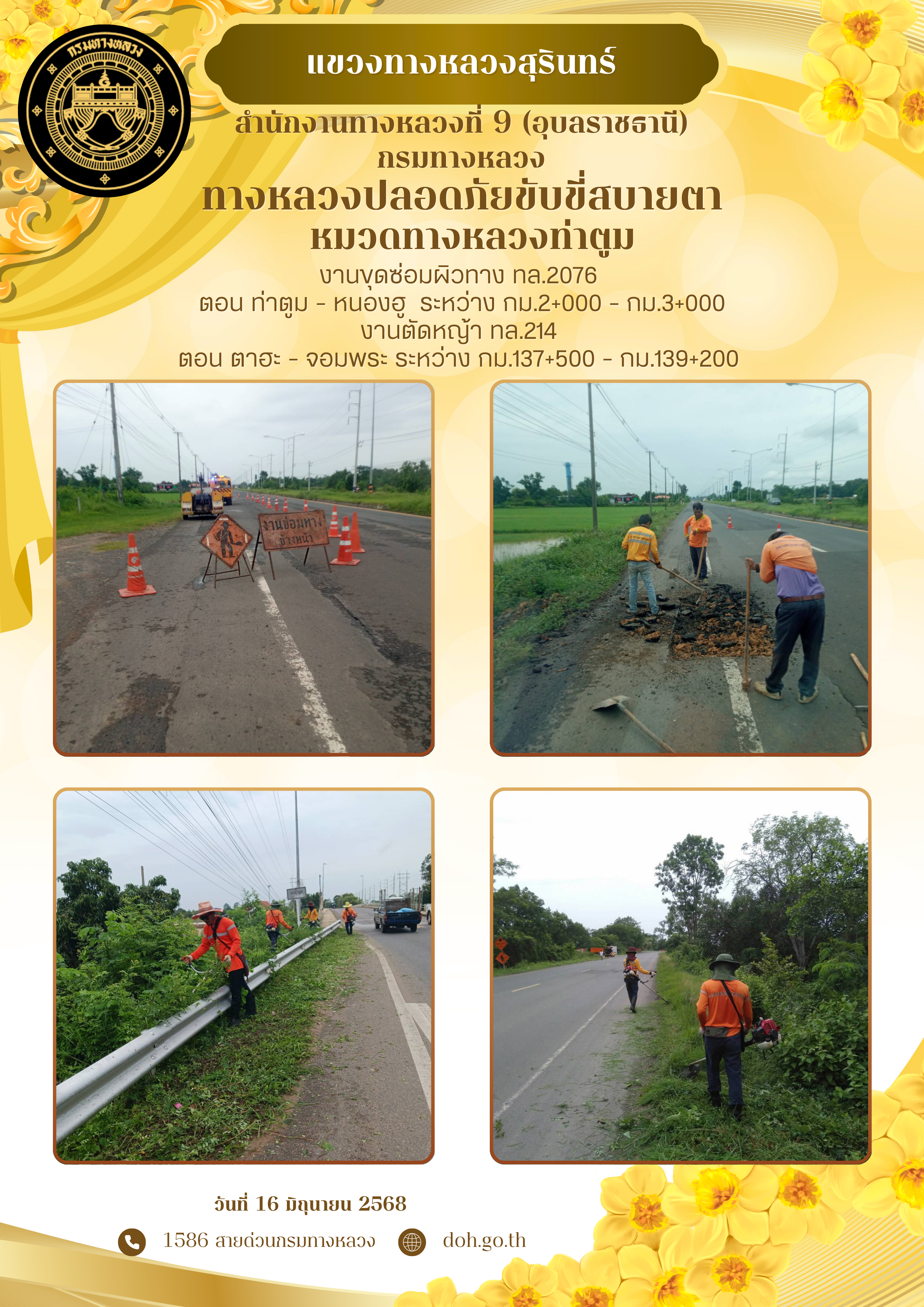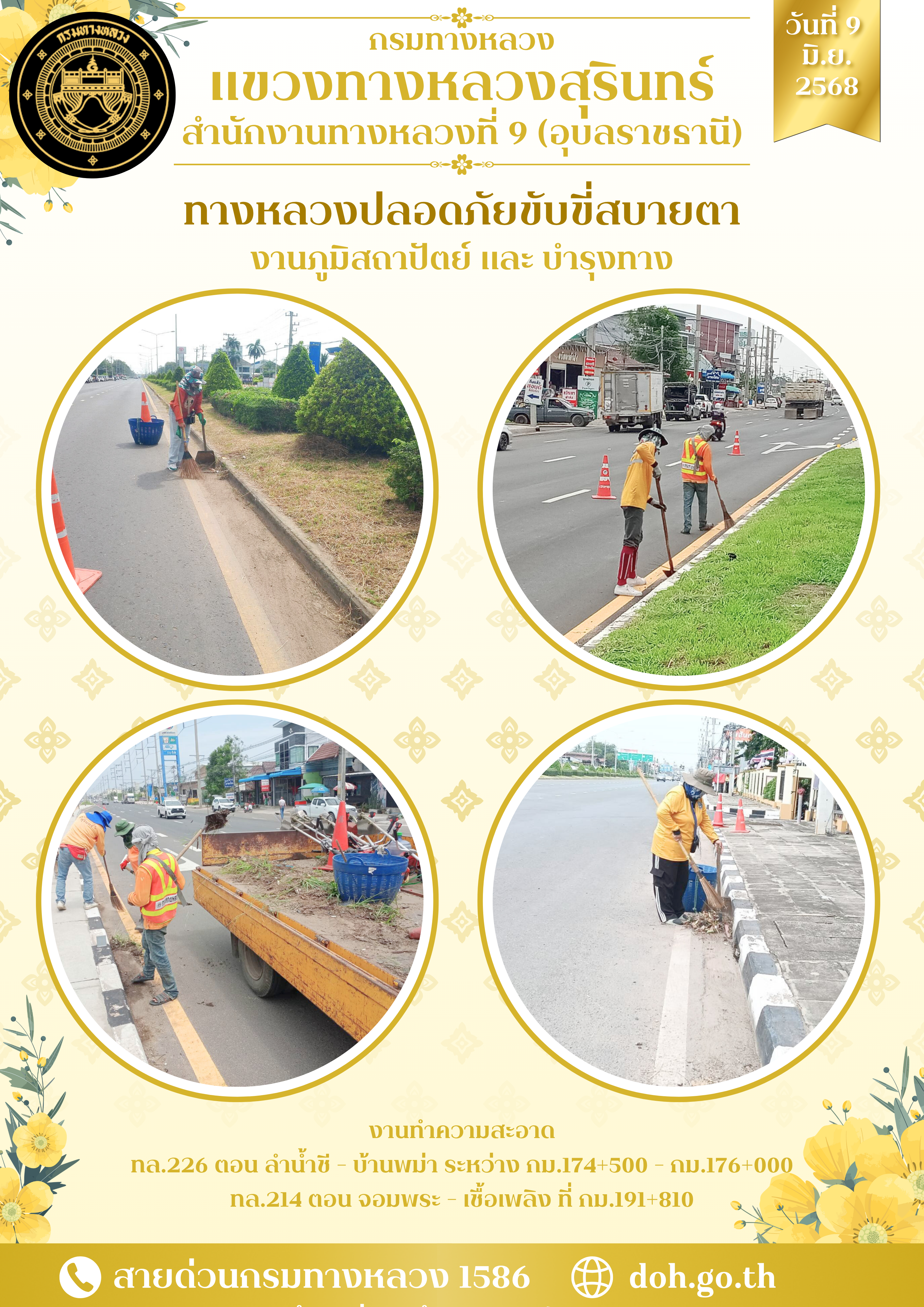 ทางหลวงปลอยภัย ขับขี่สบายตา 9 มิถุนายน 2568 |