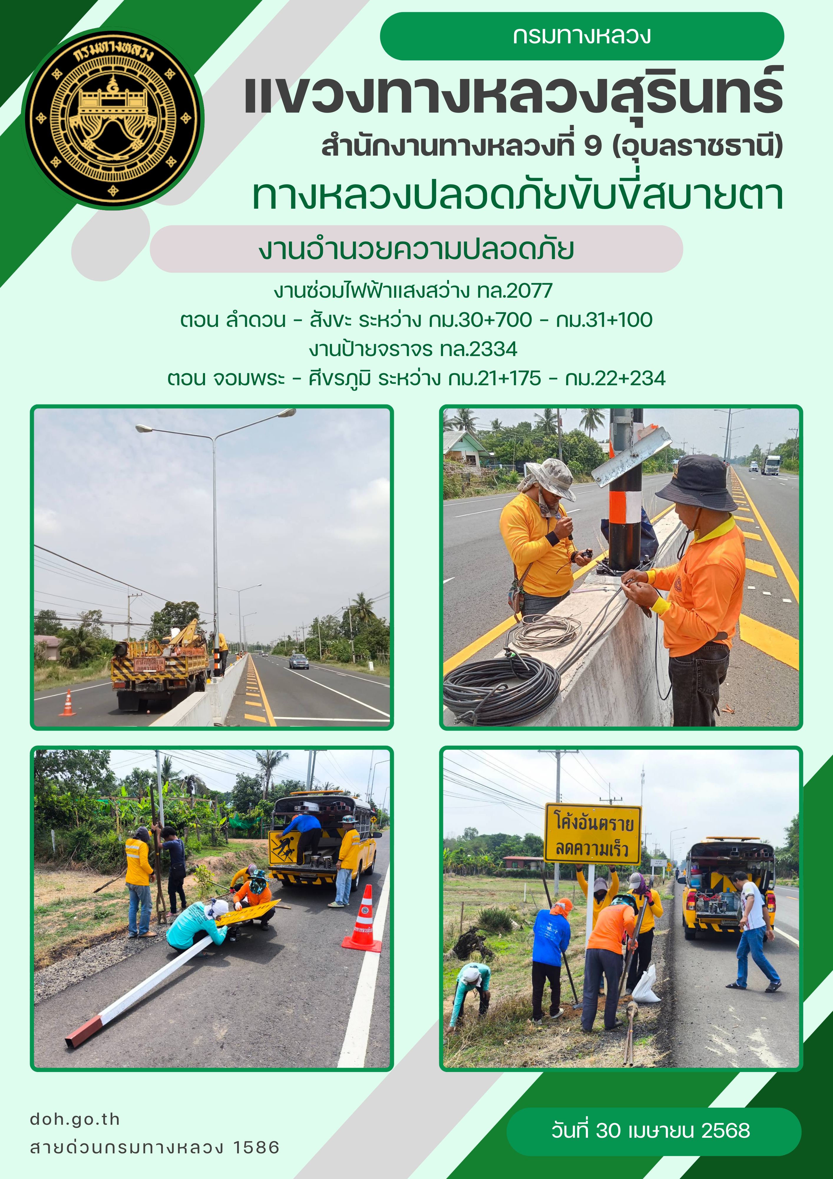 ทางหลวงปลอยภัย ขับขี่สบายตา 30 เมษายน 2568 |