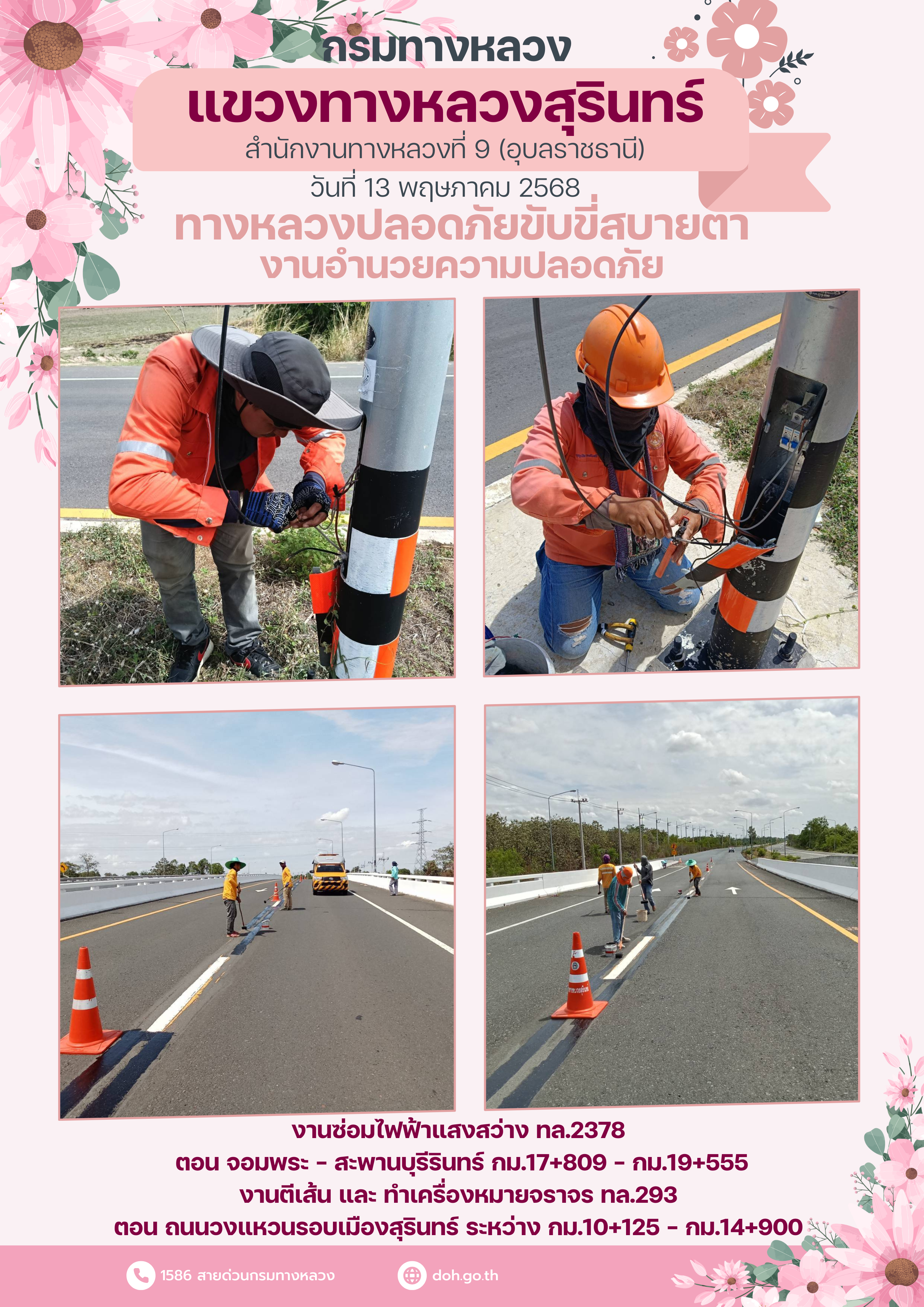 ทางหลวงปลอยภัย ขับขี่สบายตา 13 พฤษภาคม 2568 |