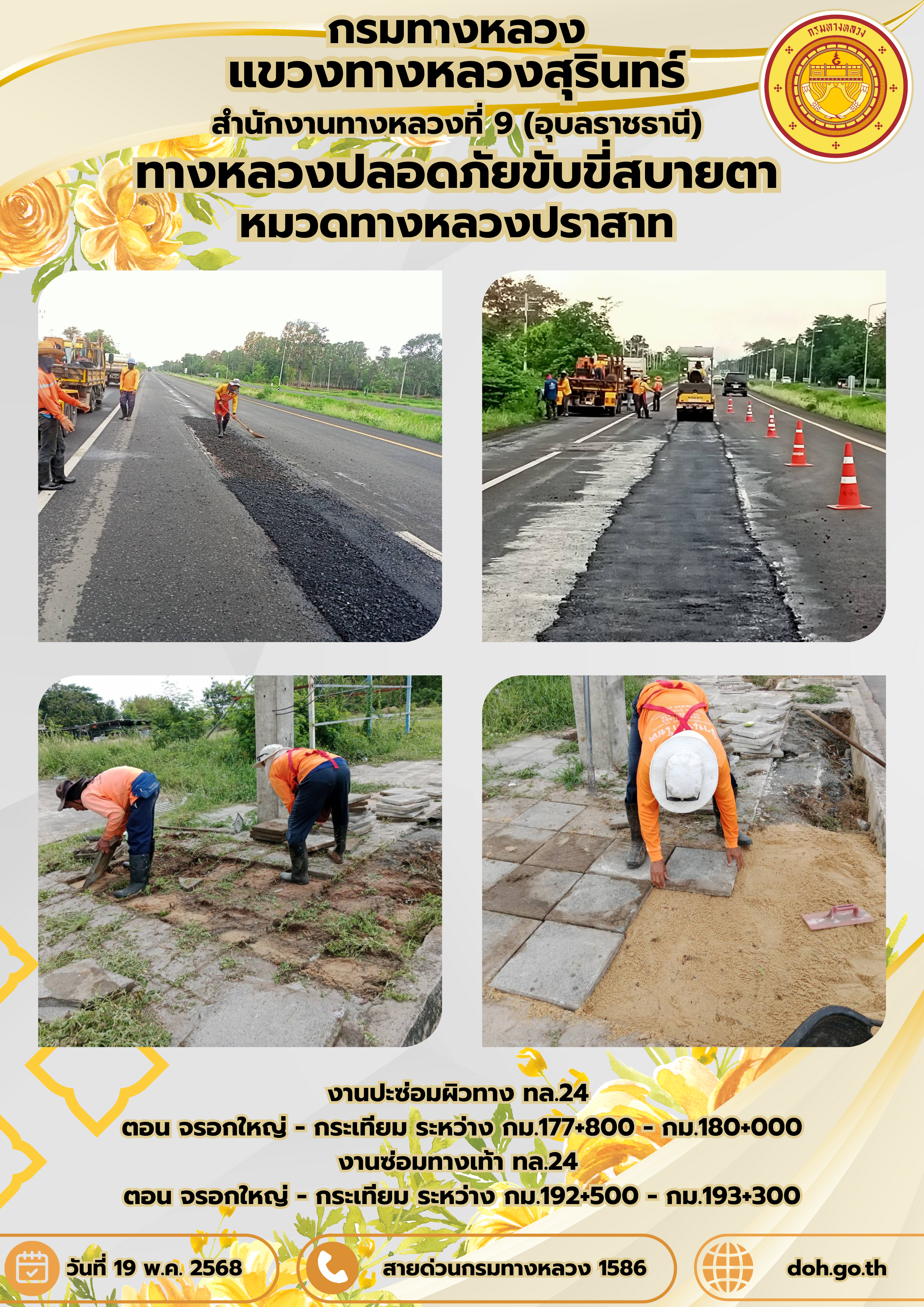 ทางหลวงปลอยภัย ขับขี่สบายตา 19 พฤษภาคม 2568 |