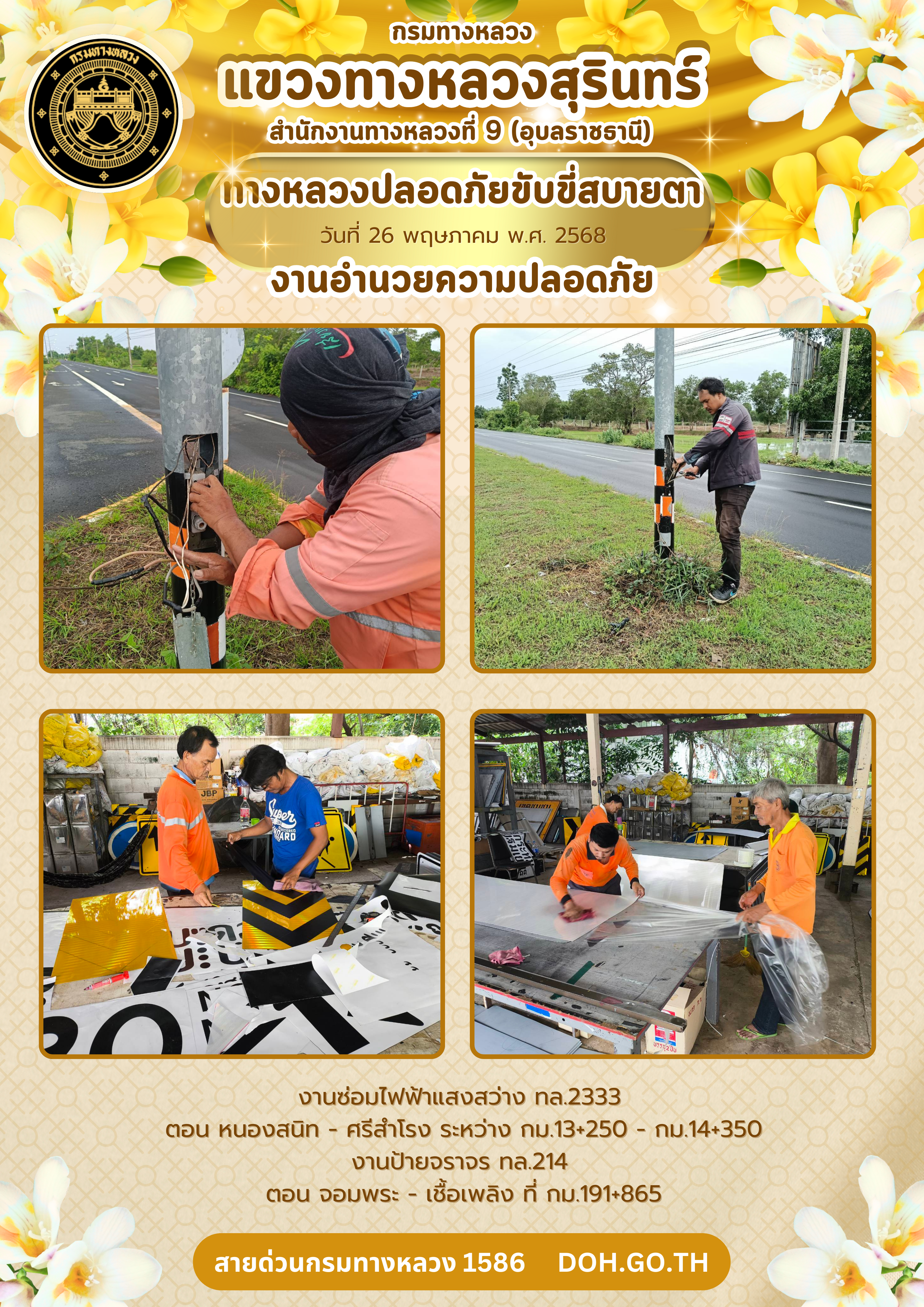 ทางหลวงปลอยภัย ขับขี่สบายตา 26 พฤษภาคม 2568 |