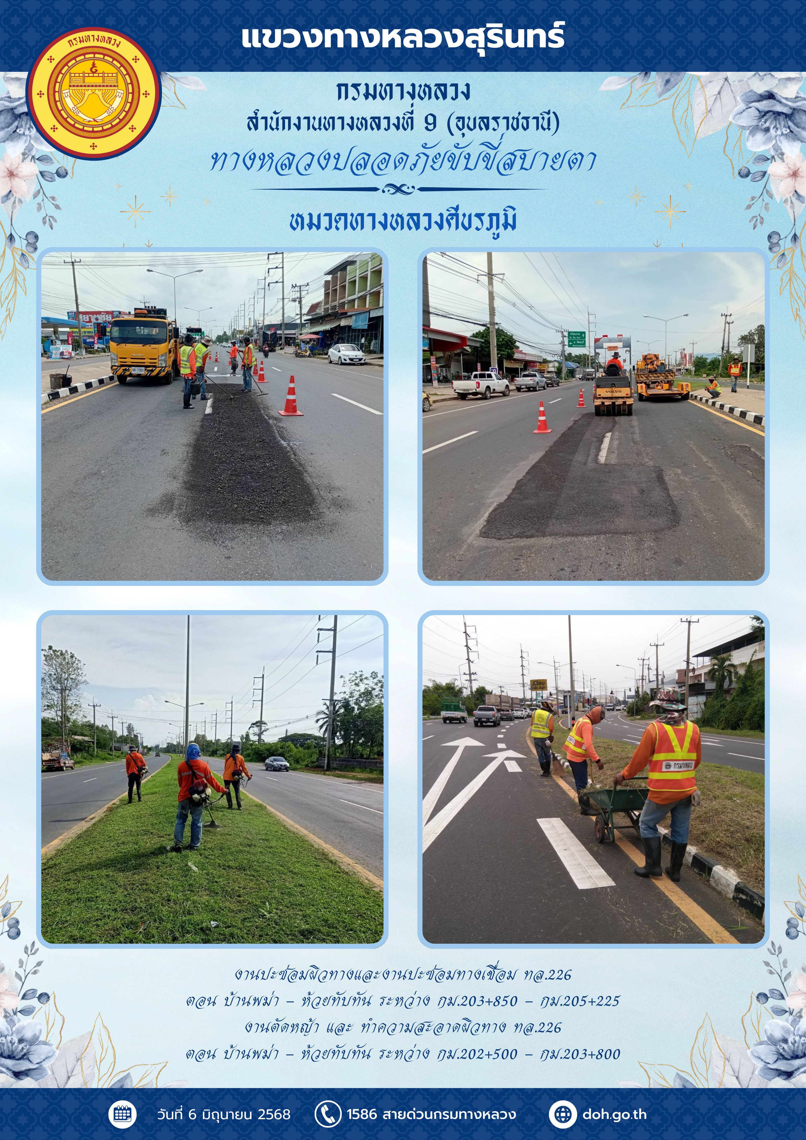 ทางหลวงปลอยภัย ขับขี่สบายตา 6 มิถุนายน 2568 |