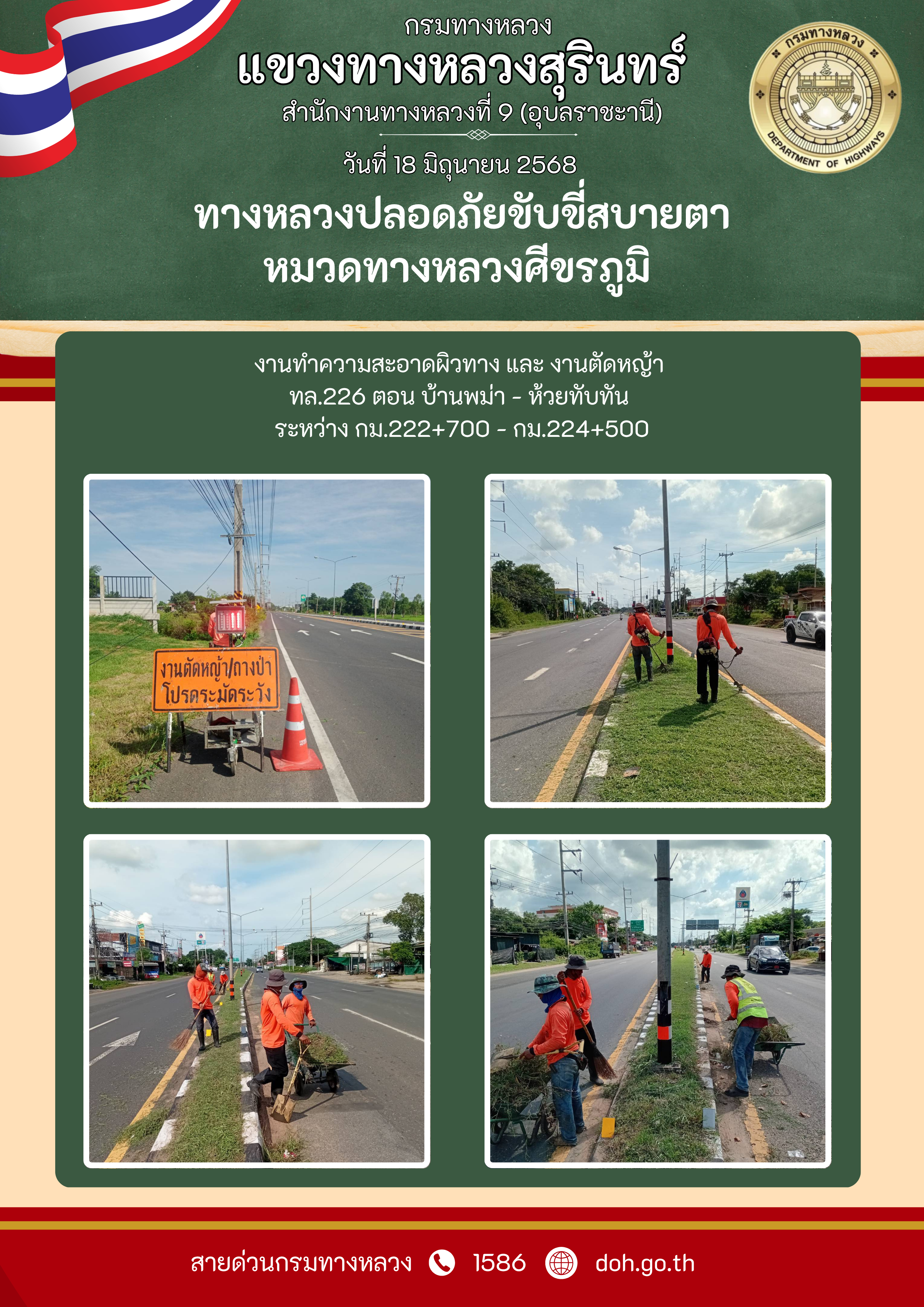 ทางหลวงปลอยภัย ขับขี่สบายตา 18 มิถุนายน 2568 |