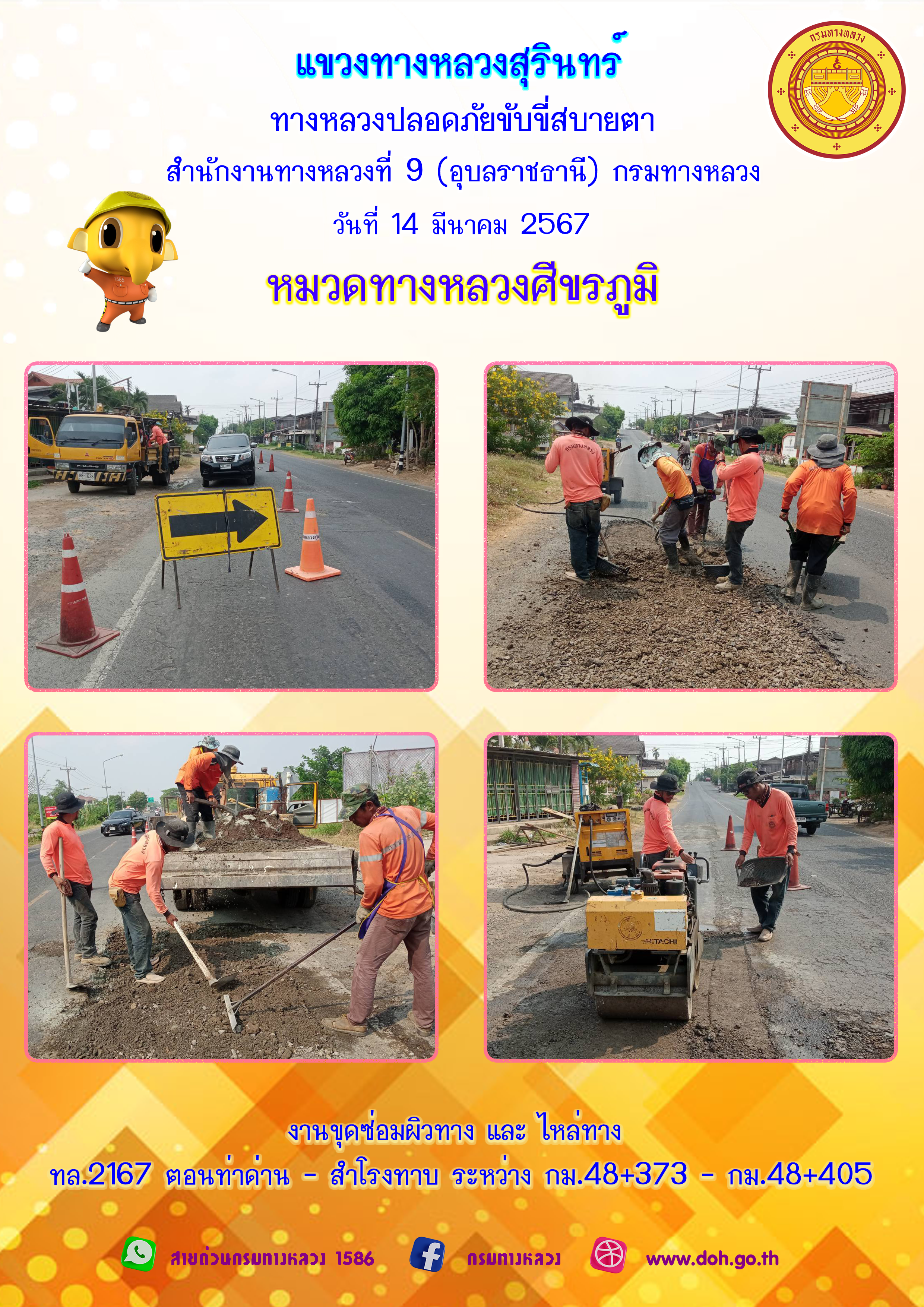 ทางหลวงปลอยภัย ขับขี่สบายตา 14 มีนาคม 2567 |