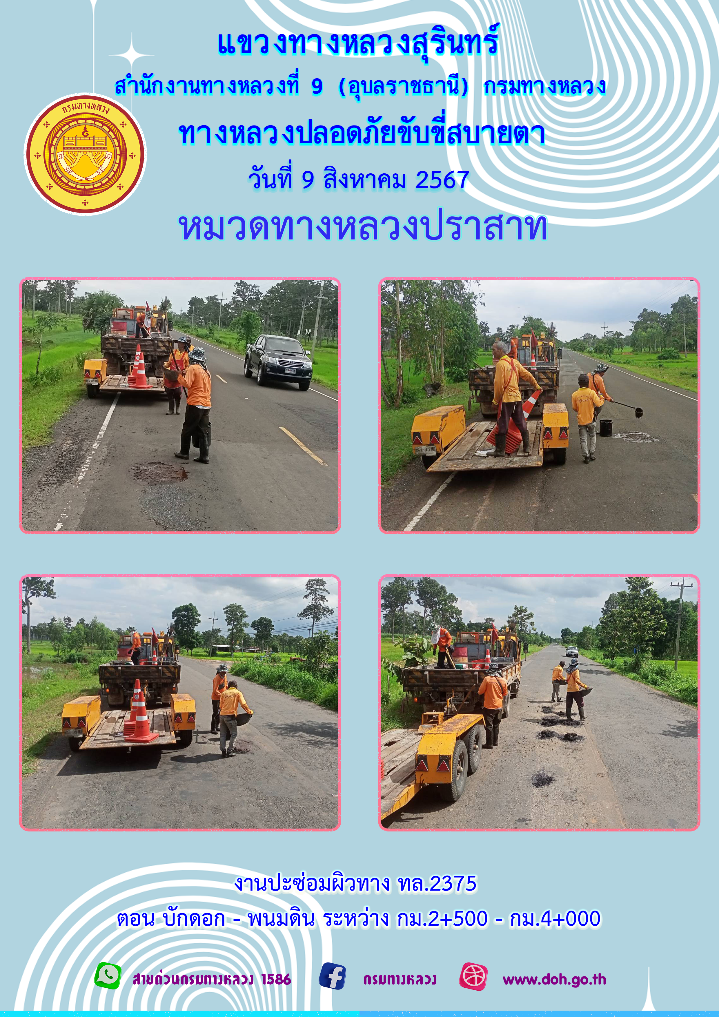ทางหลวงปลอยภัย ขับขี่สบายตา 9 สิงหาคม 2567 |