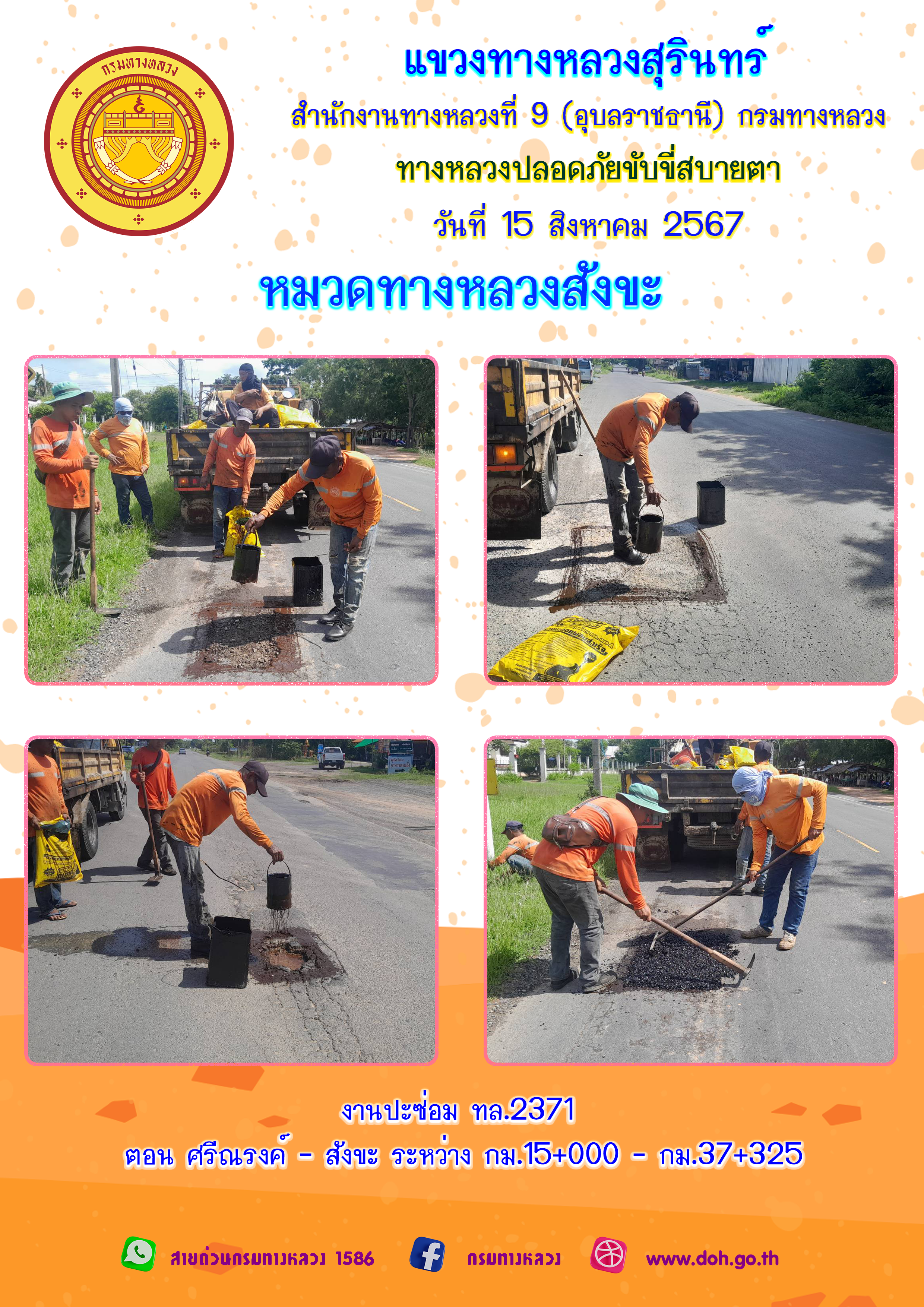 ทางหลวงปลอยภัย ขับขี่สบายตา 15 สิงหาคม 2567 |
