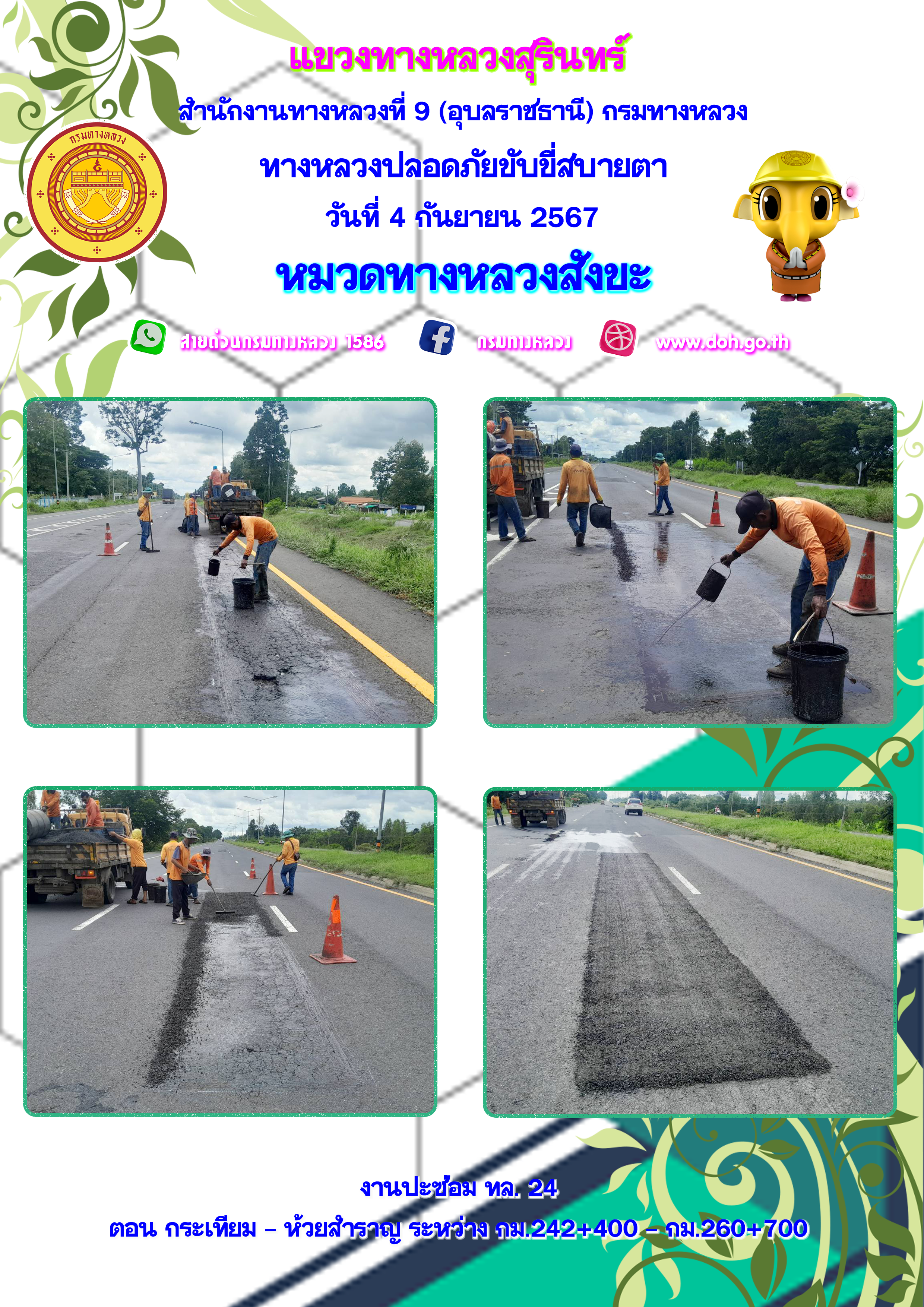 ทางหลวงปลอยภัย ขับขี่สบายตา 4 กันยายน 2567 |