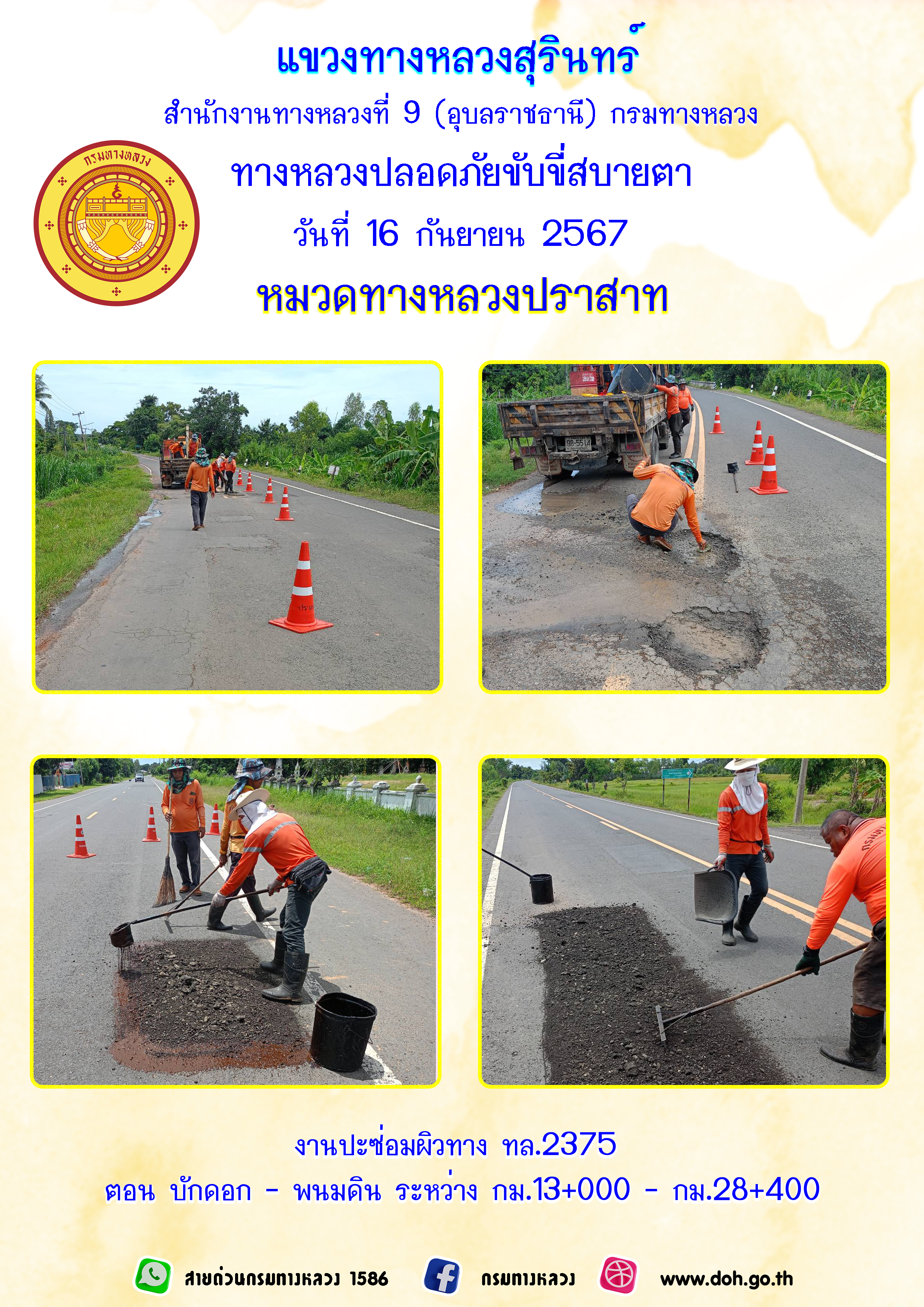 ทางหลวงปลอยภัย ขับขี่สบายตา 16 กันยายน 2567 |