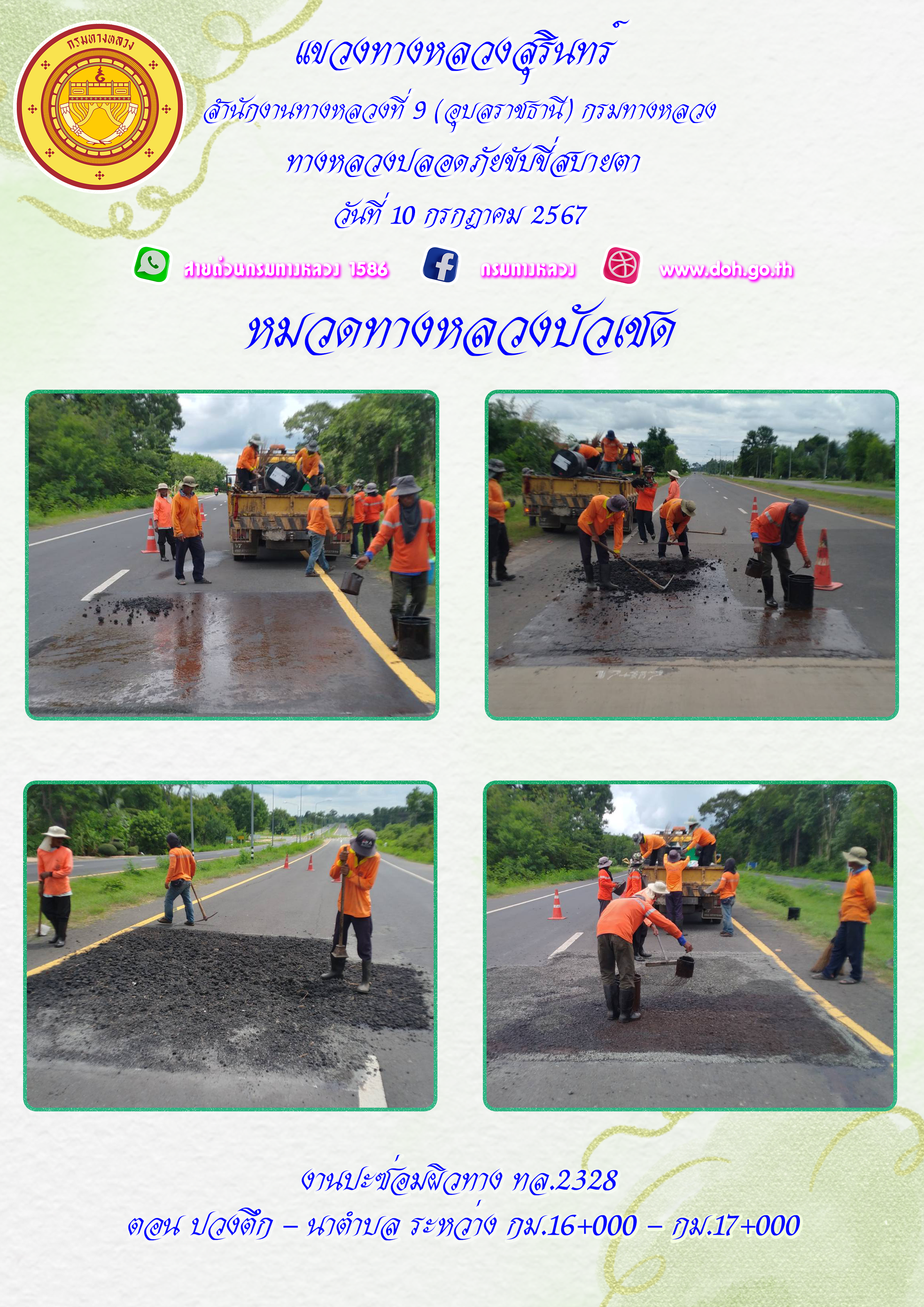 ทางหลวงปลอยภัย ขับขี่สบายตา 17 กรกฎาคม 2567 |