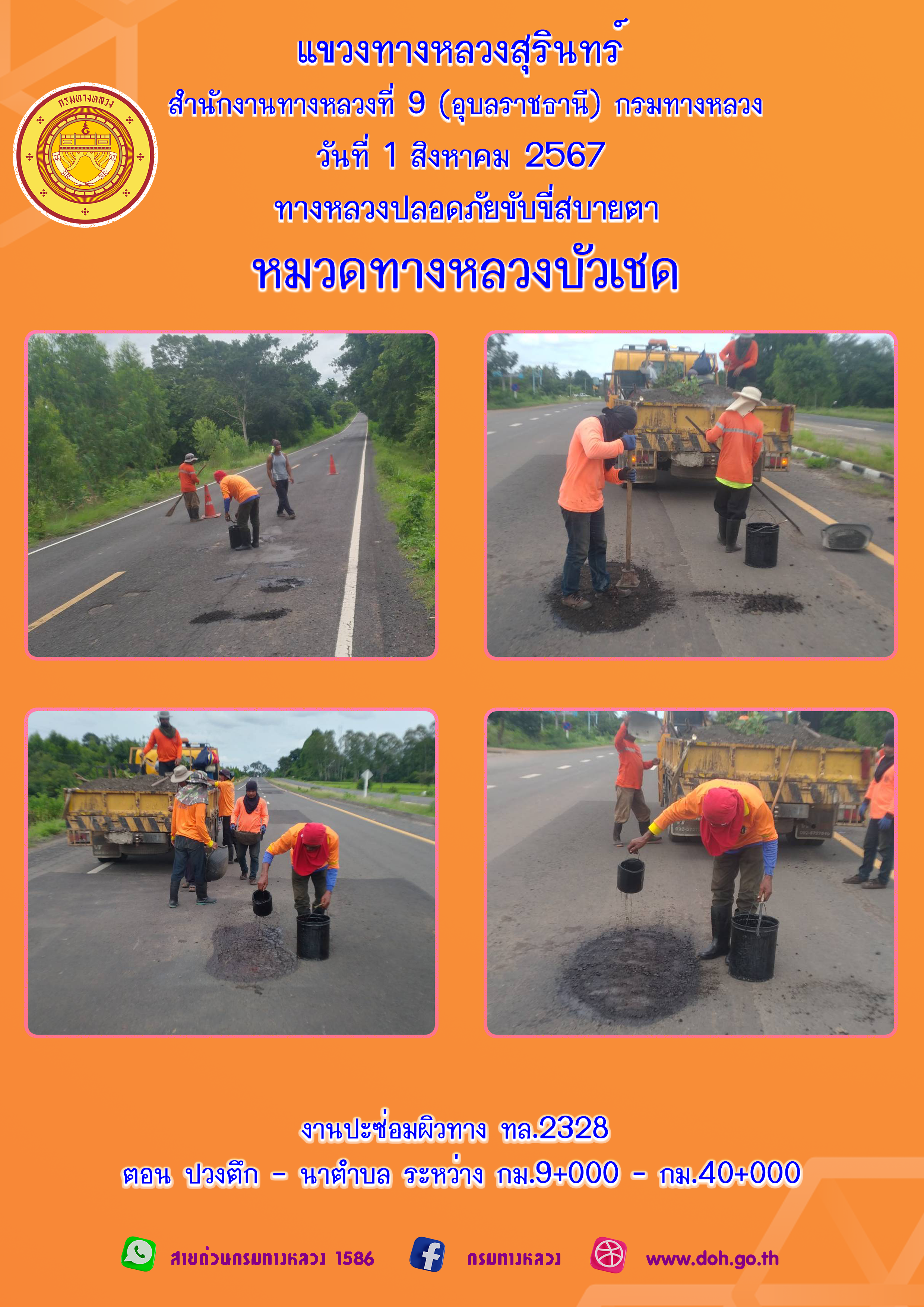 ทางหลวงปลอยภัย ขับขี่สบายตา 1 กรกฎาคม 2567 |
