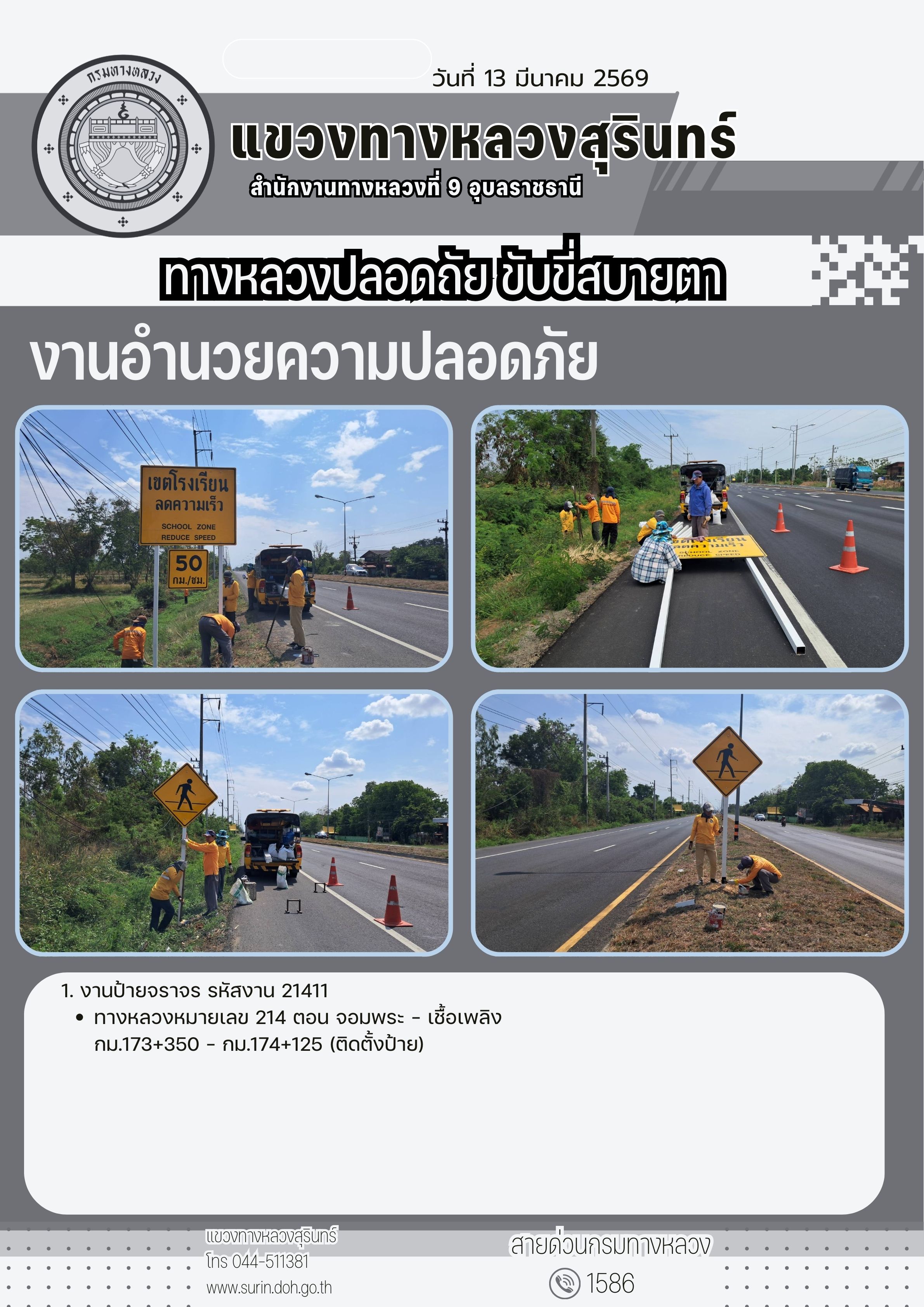 ทางหลวงปลอดภัย ขับขี่สบายตา 13 มีนาคม 2569 |