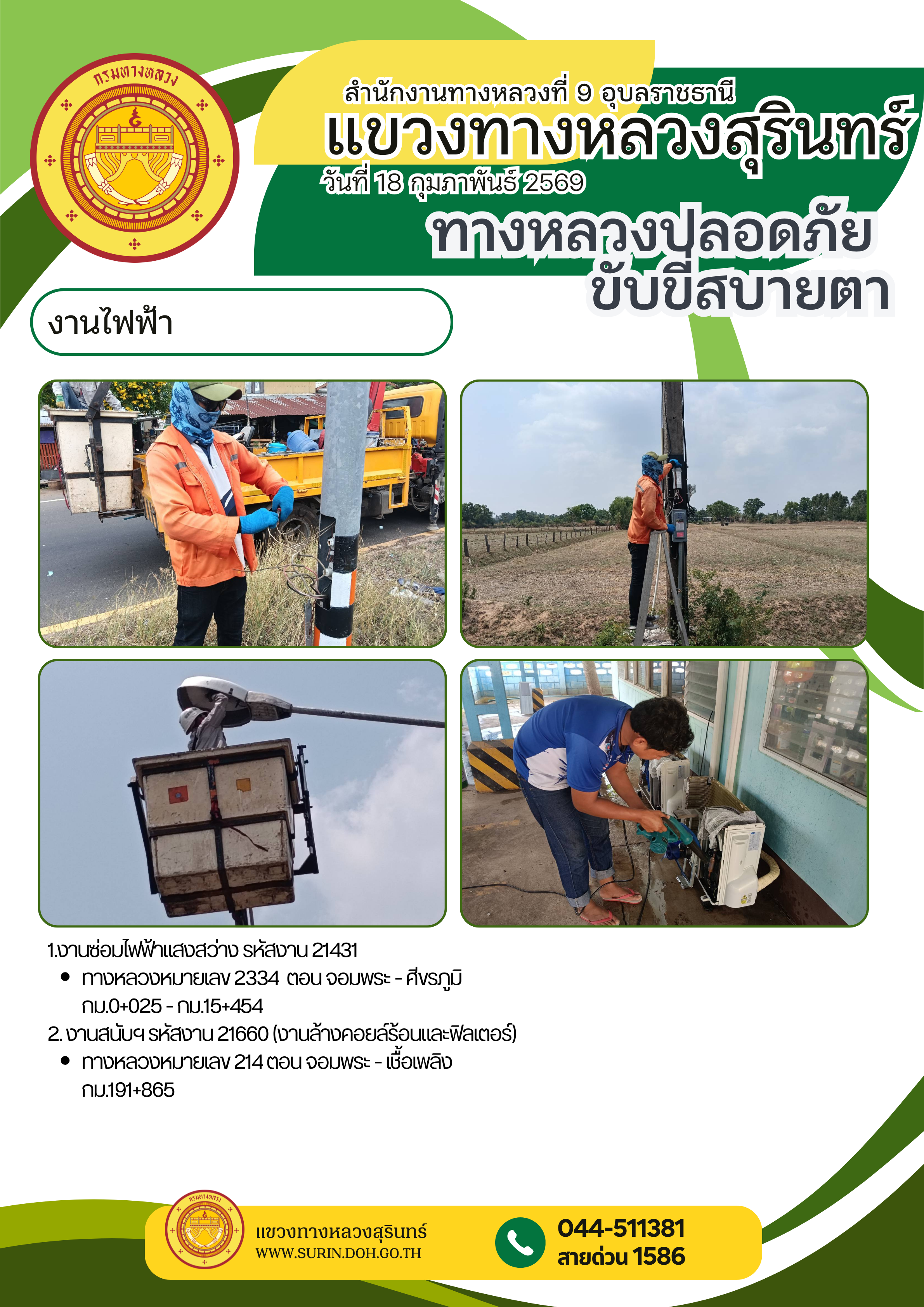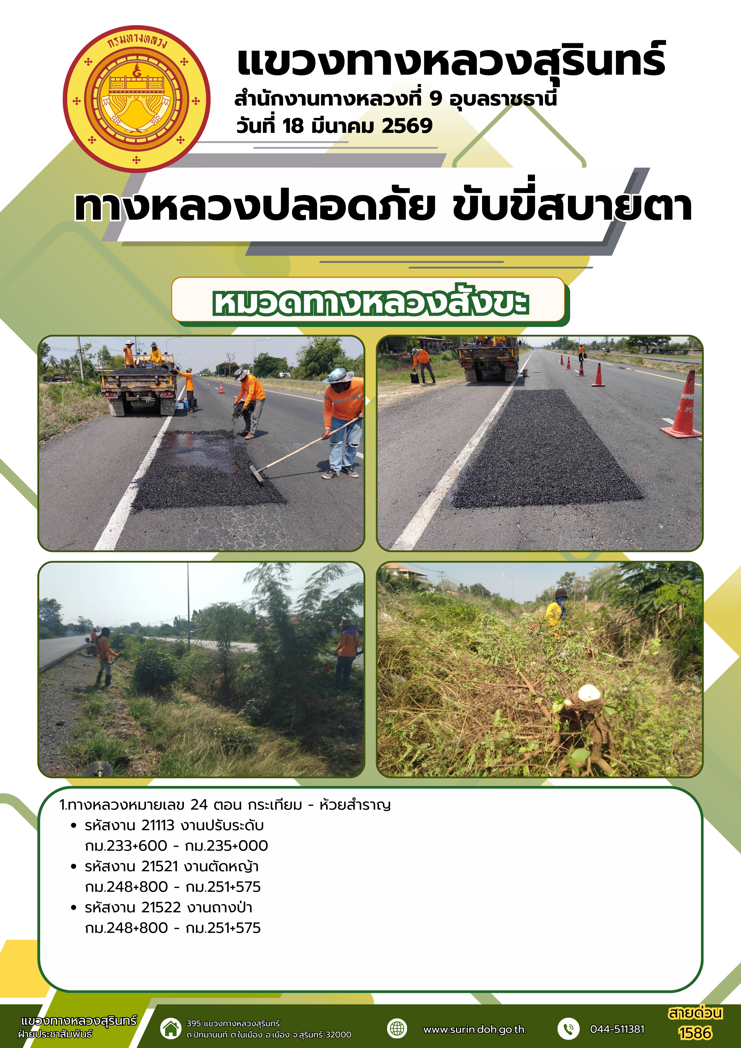 ทางหลวงปลอดภัย ขับขี่สบายตา 18 มีนาคม 2569 |
