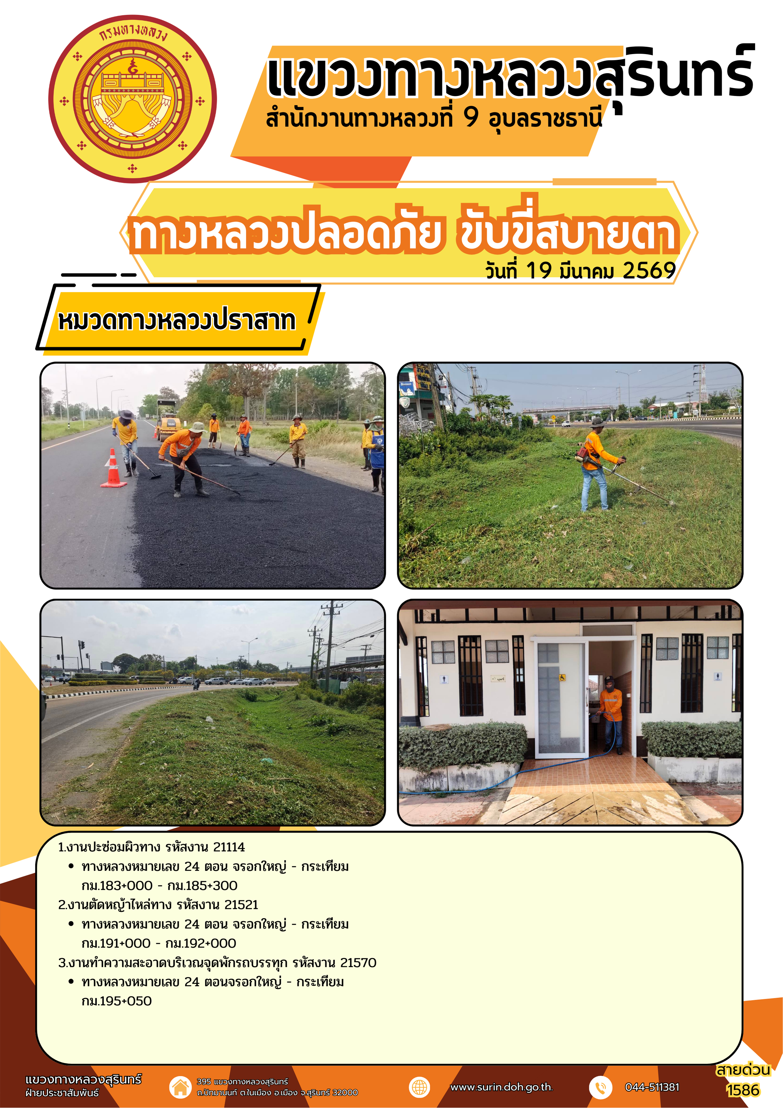 ทางหลวงปลอดภัย ขับขี่สบายตา 19 มีนาคม 2569 |