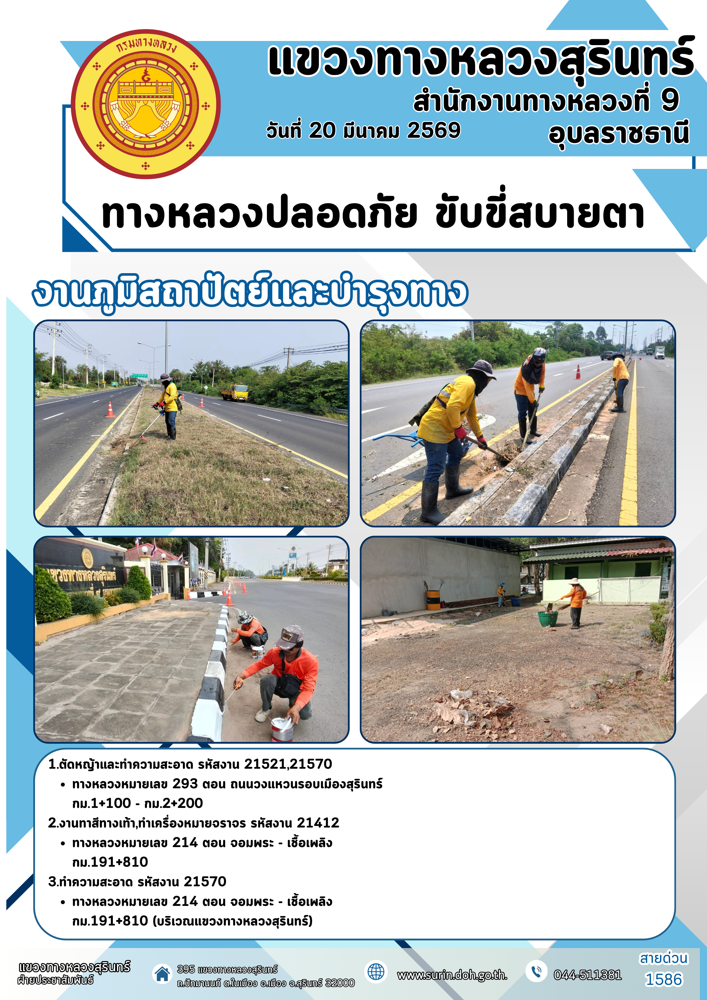 ทางหลวงปลอดภัย ขับขี่สบายตา 20 มีนาคม 2569 |