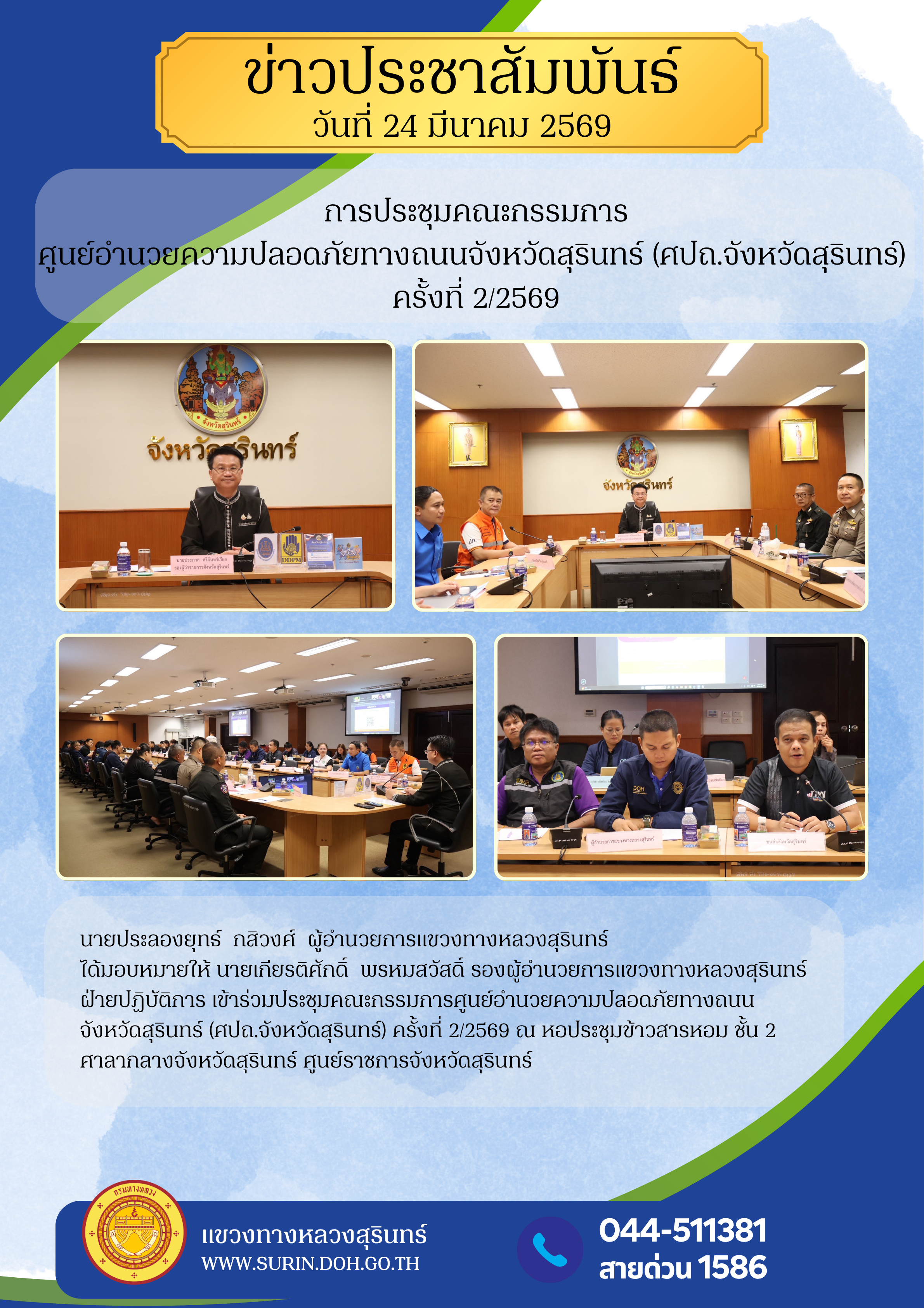 ประชุมคณะกรรมการศูนย์อำนวยความปลอดภัย จังหวัดสุรินทร์ |