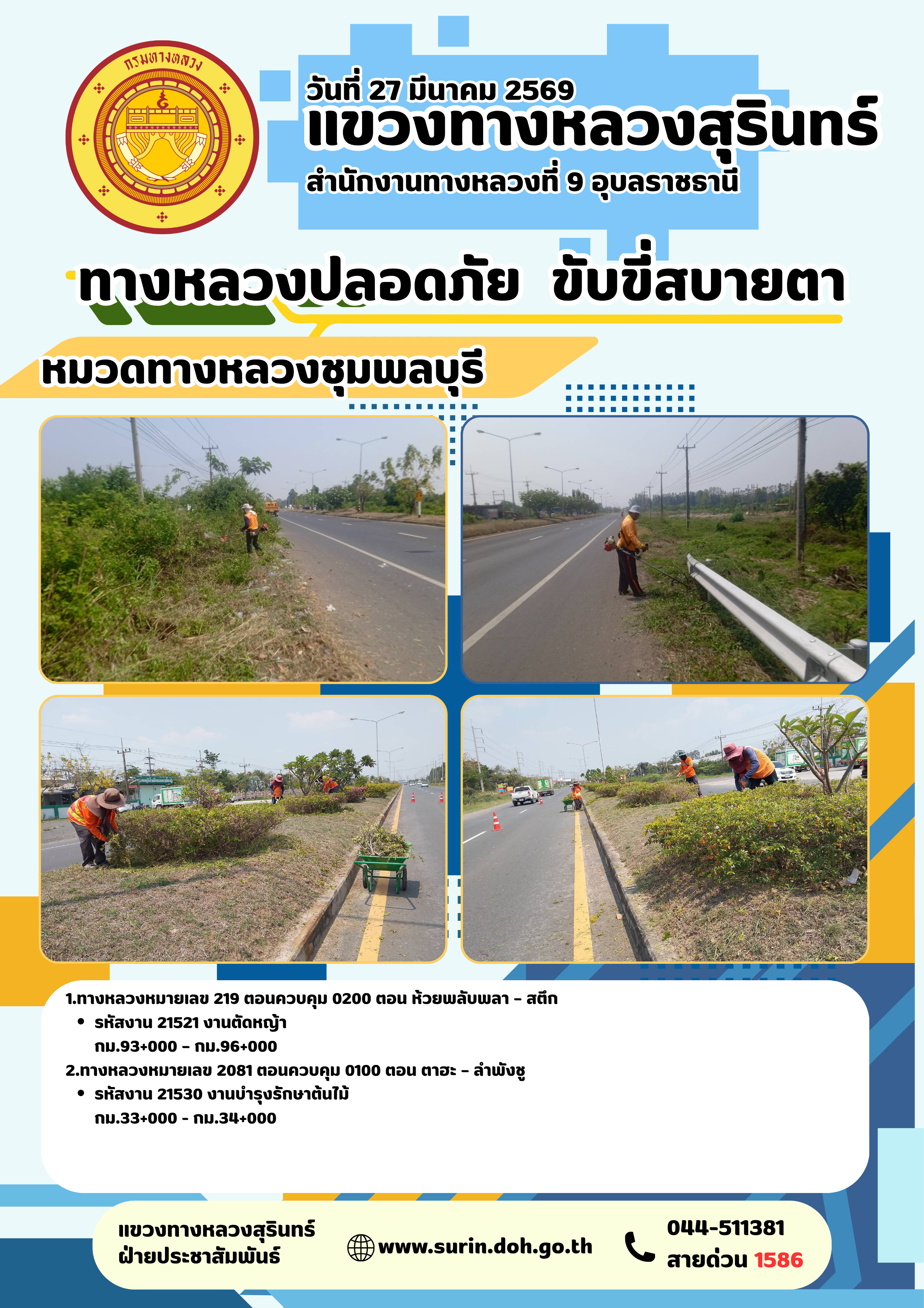 ทางหลวงปลอดภัย ขับขี่สบายตา 27 มีนาคม 2569 |