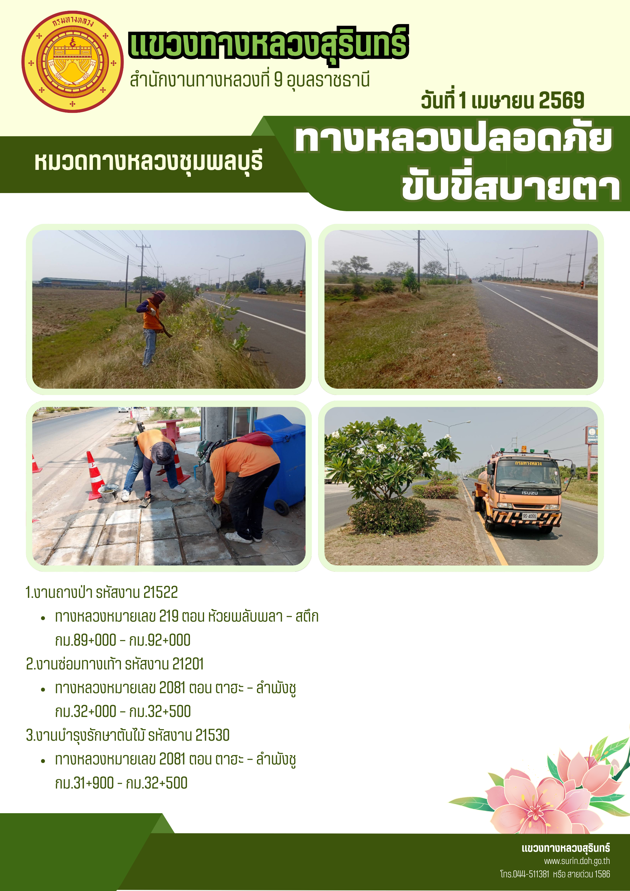 ทางหลวงปลอดภัย ขับขี่สบายตา 1 เมษายน 2569 |