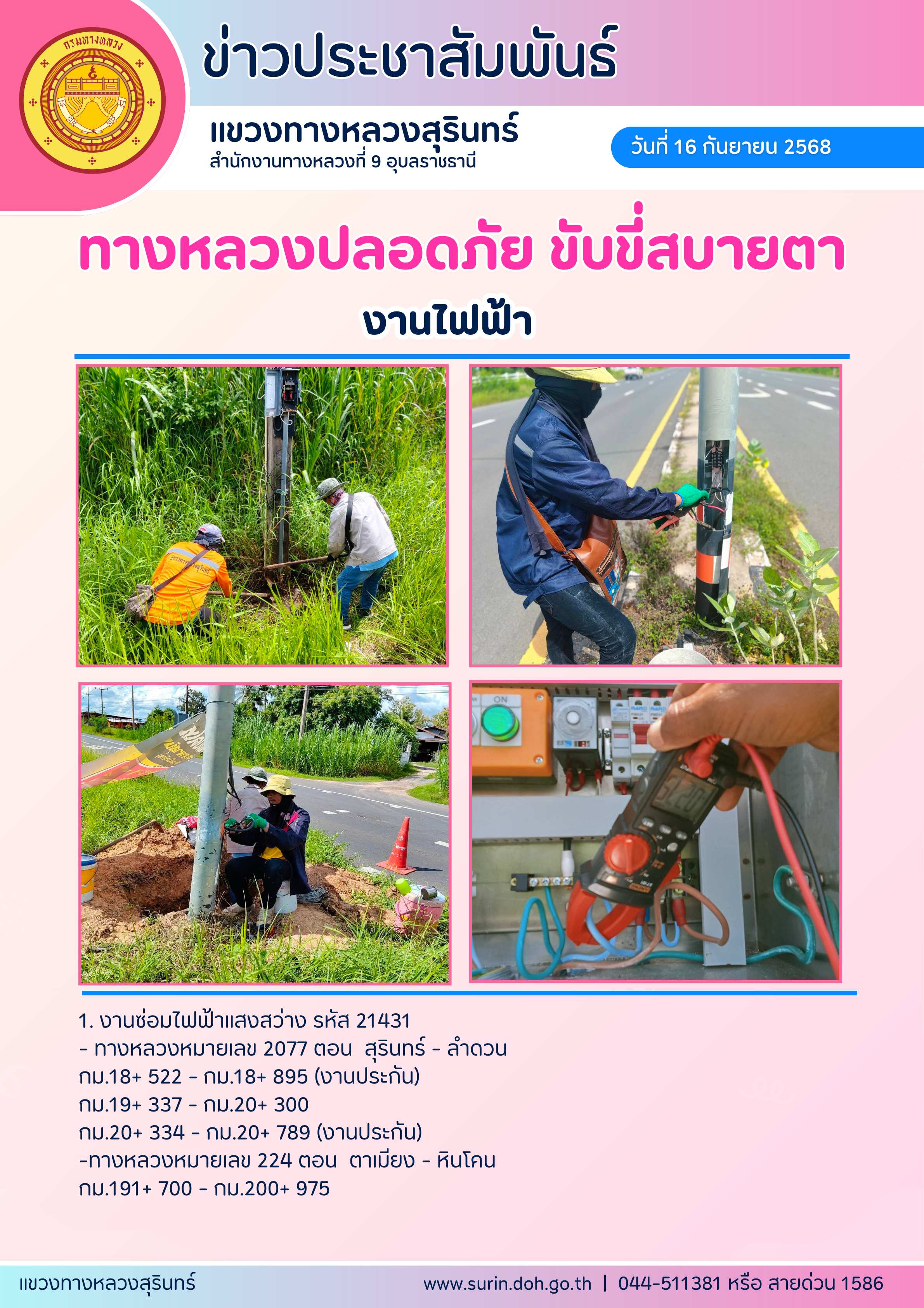 ทางหลวงปลอดภัย ขับขี่สบายตา 16 กันยายน 2568 |