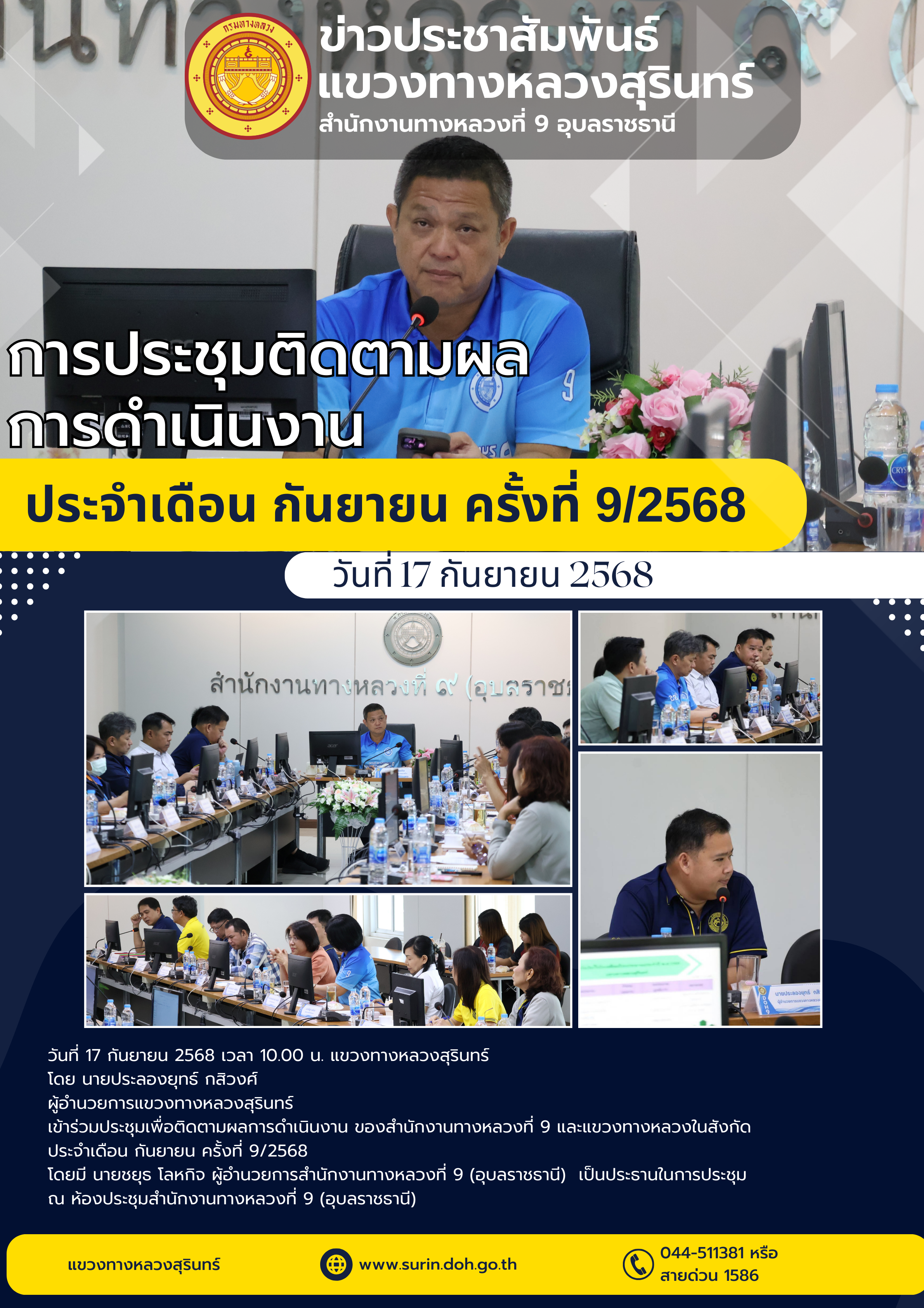 ประชุมติดตามผลการดำเนินงาน ประจำเดือน กันยายน 2568 ครั้งที่ 9/2568 |