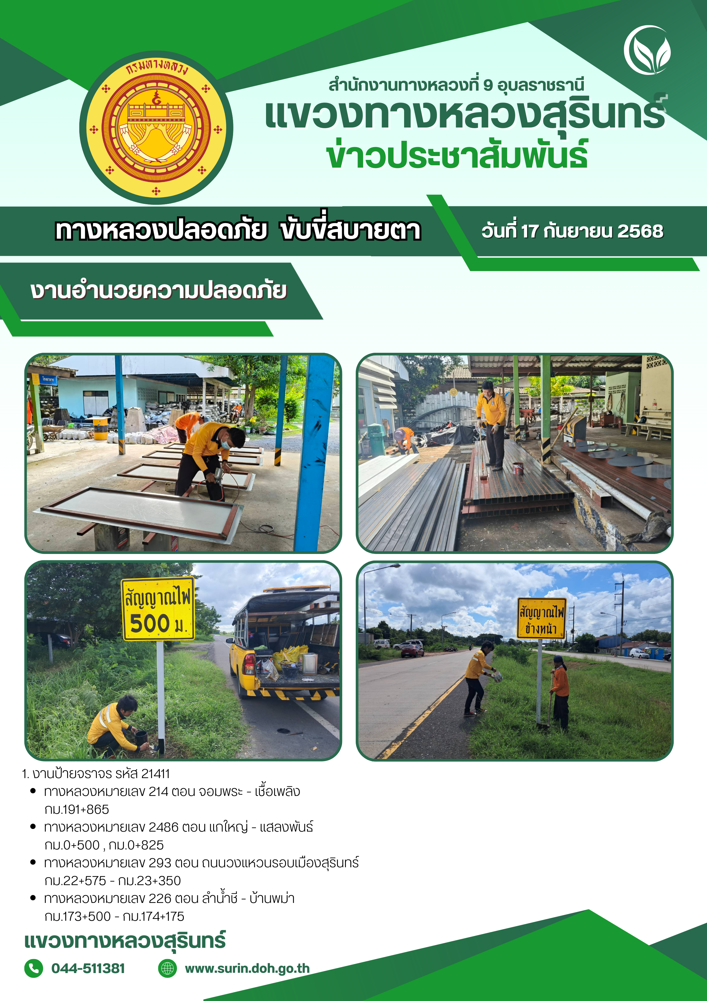 ทางหลวงปลอดภัย ขับขี่สบายตา 17 กันยายน 2568 |