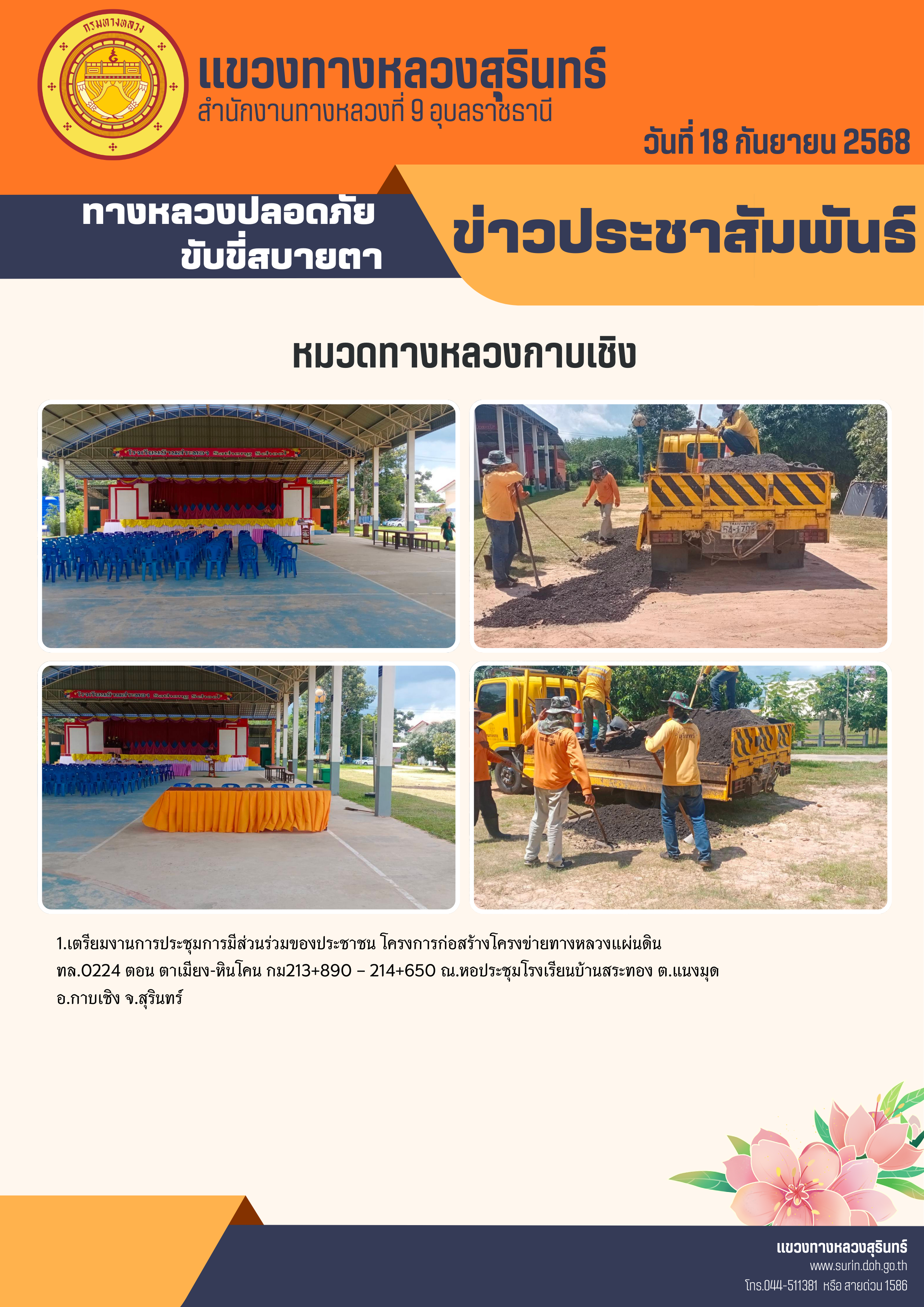 ทางหลวงปลอดภัย ขับขี่สบายตา 18 กันยายน 2568 |