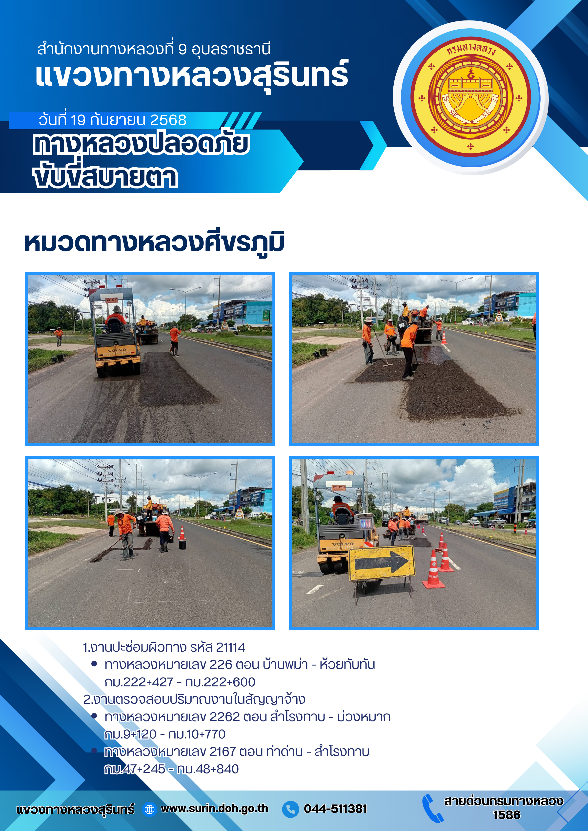 ทางหลวงปลอดภัย ขับขี่สบายตา 19 กันยายน 2568 |