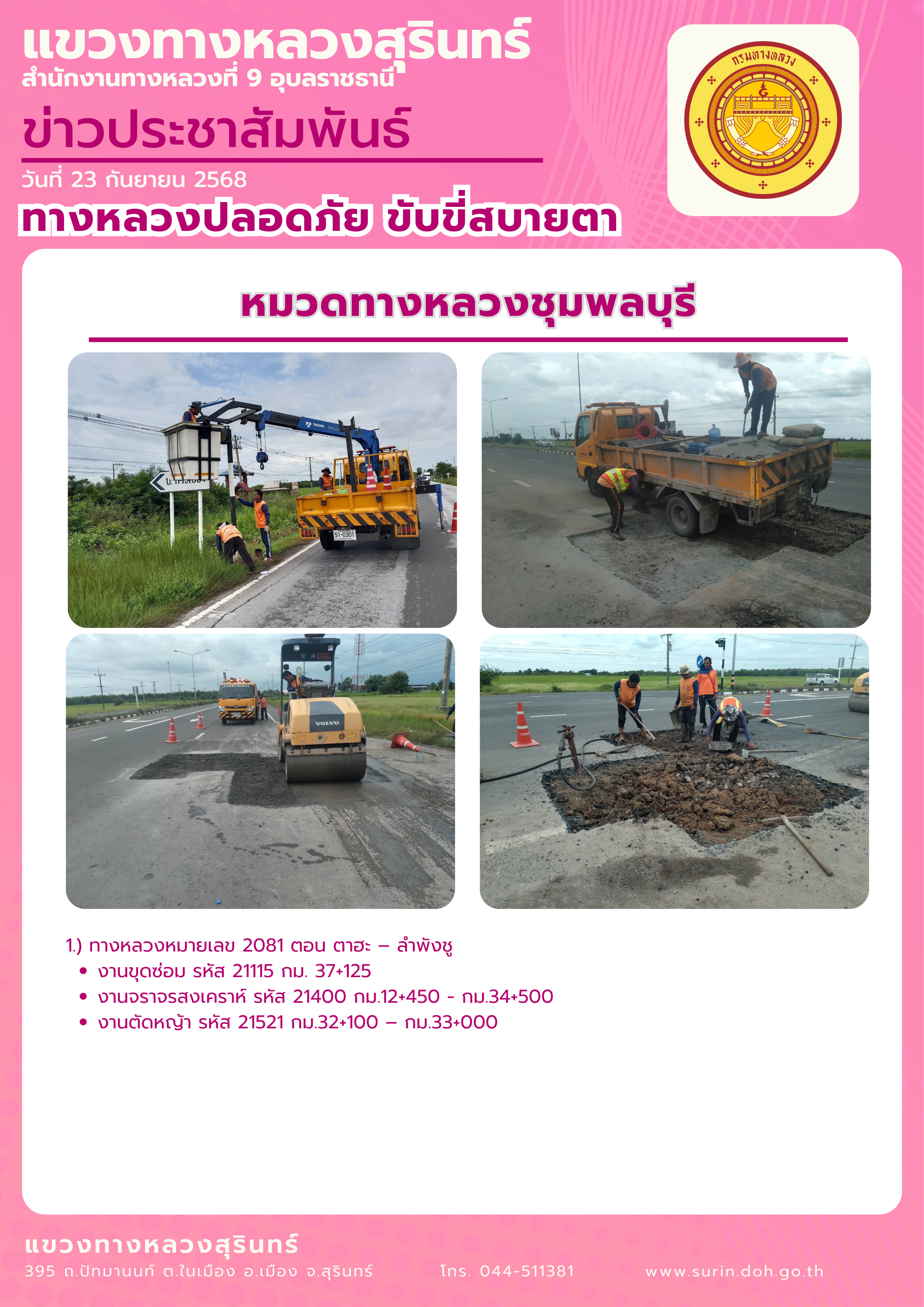 ทางหลวงปลอดภัย ขับขี่สบายตา 23 กันยายน 2568 |