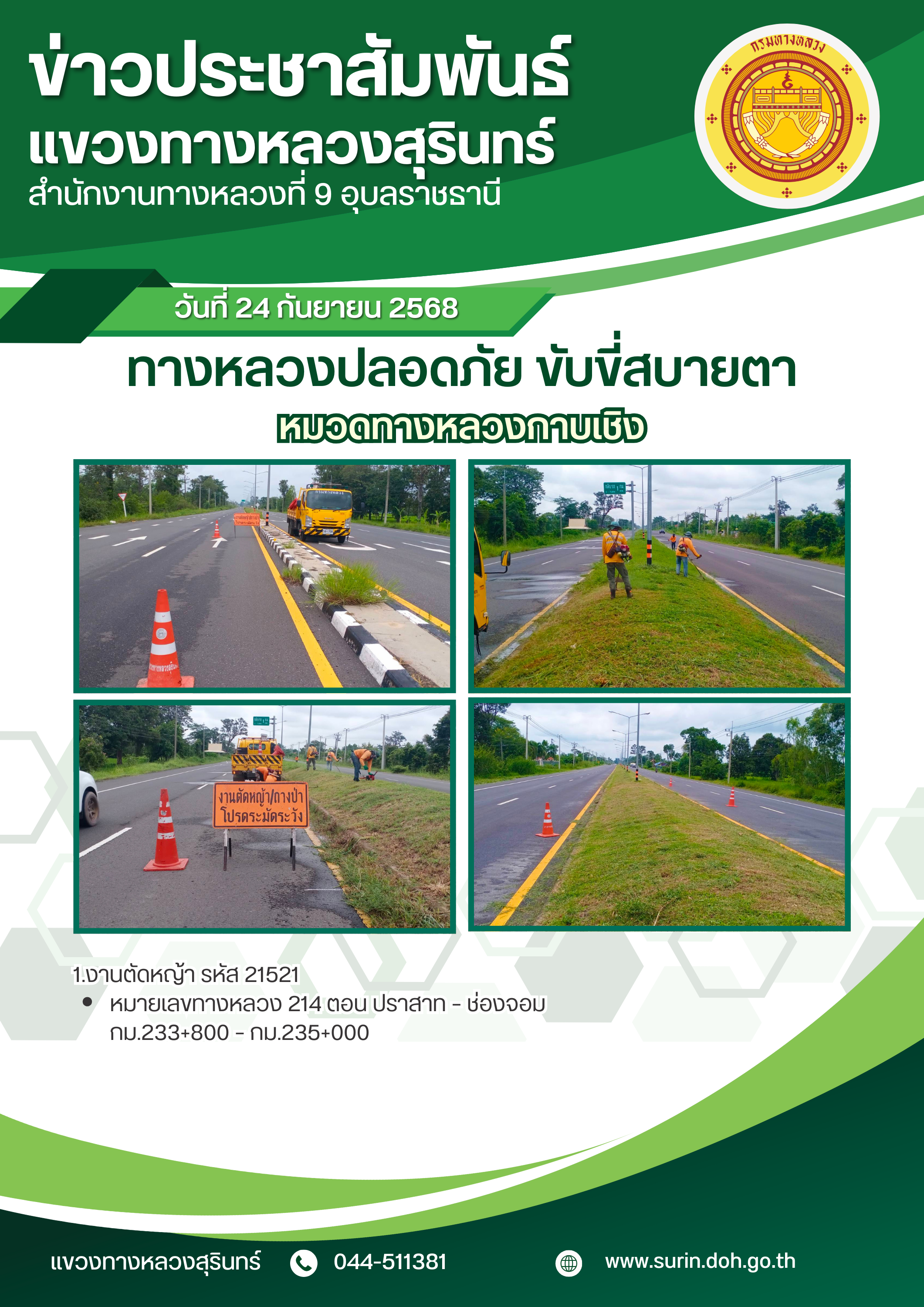 ทางหลวงปลอดภัย ขับขี่สบายตา 24 กันยายน 2568 |