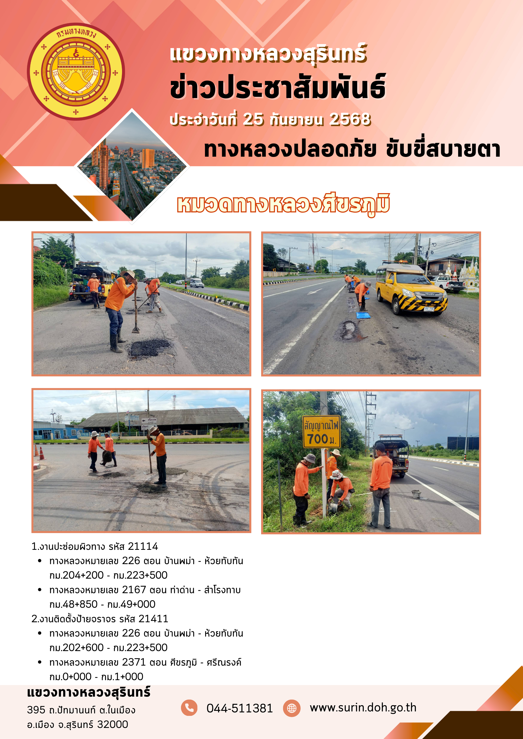 ทางหลวงปลอดภัย ขับขี่สบายตา 25 กันยายน 2568 |
