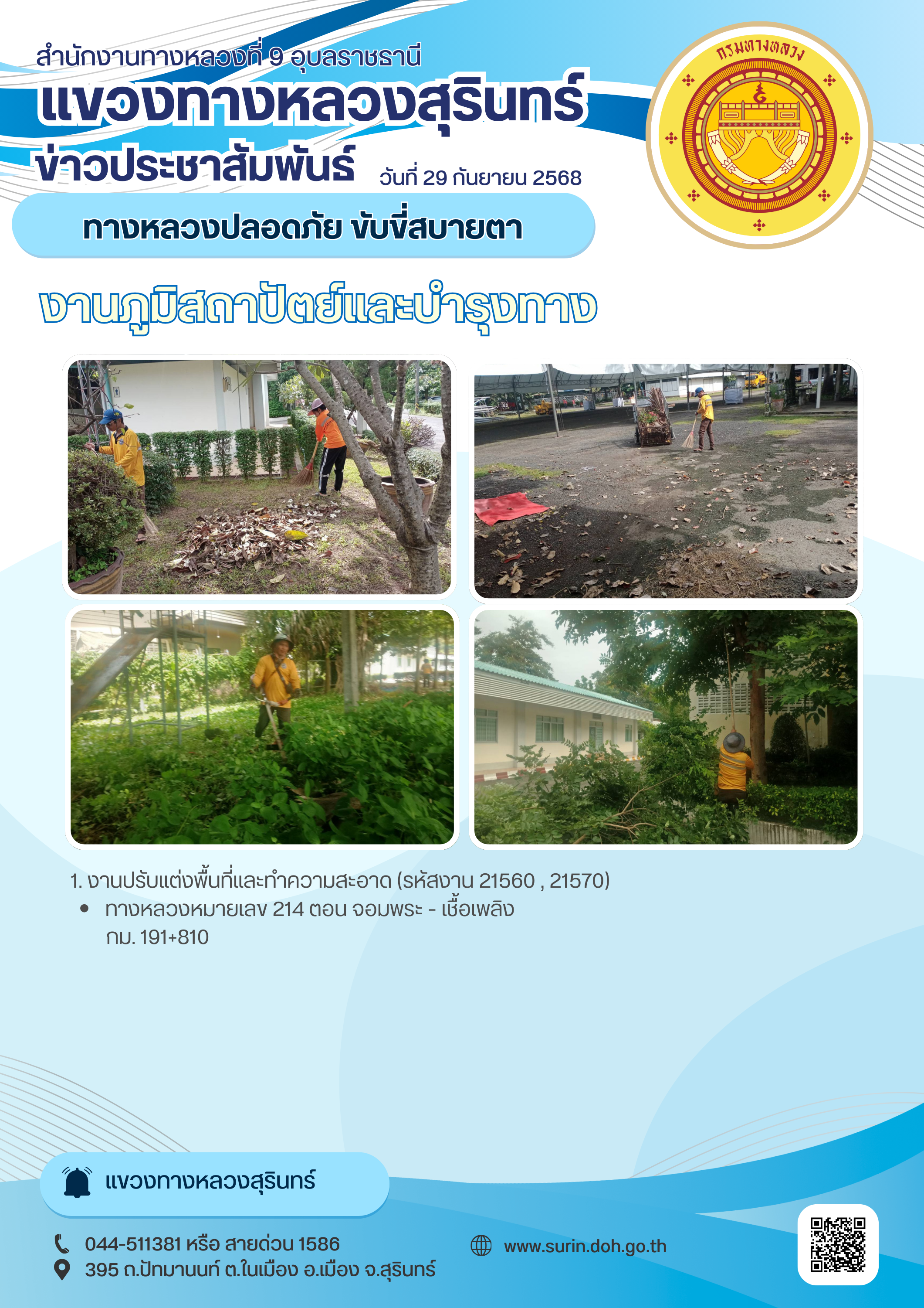 ทางหลวงปลอดภัย ขับขี่สบายตา 29 กันยายน 2568 |