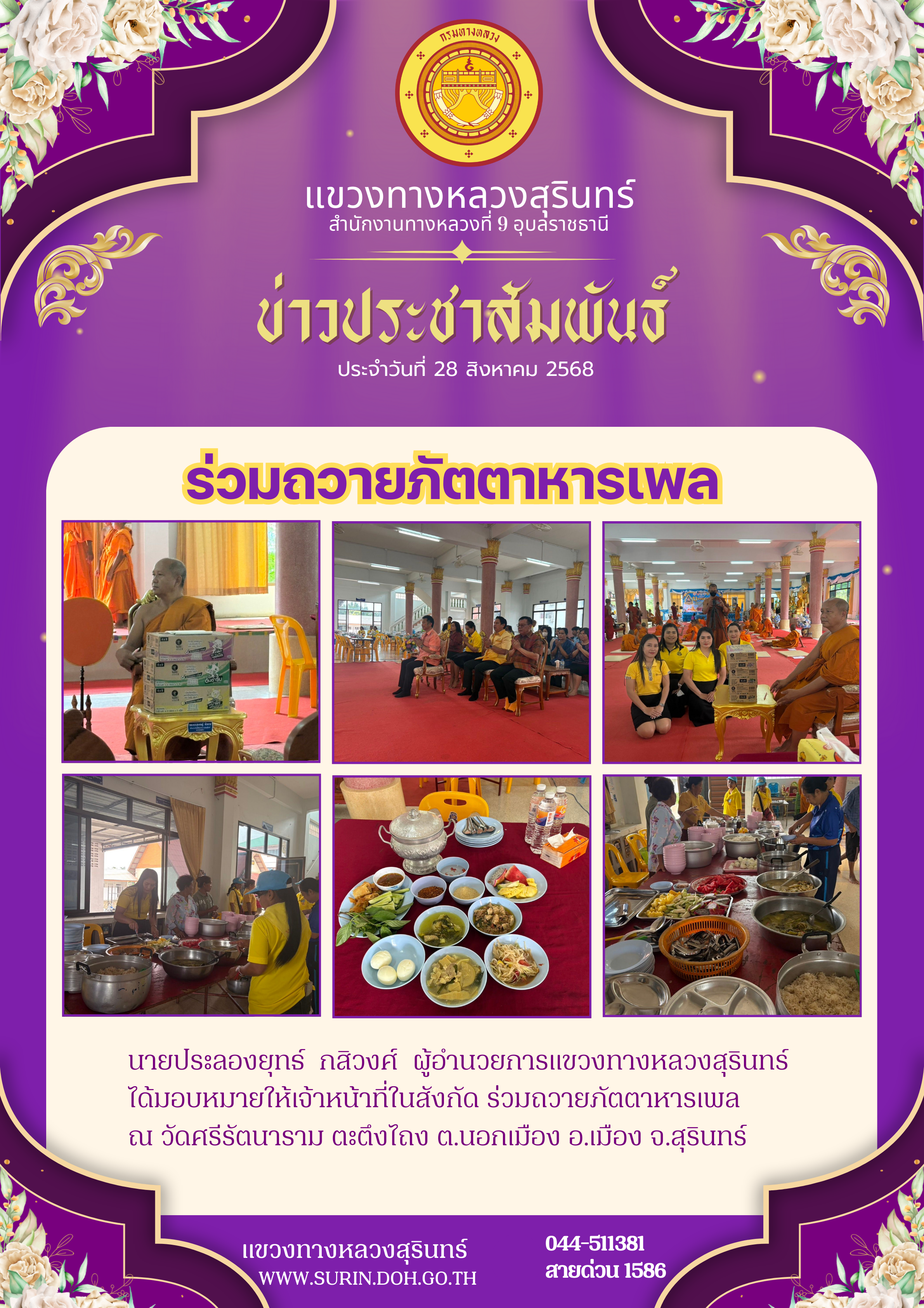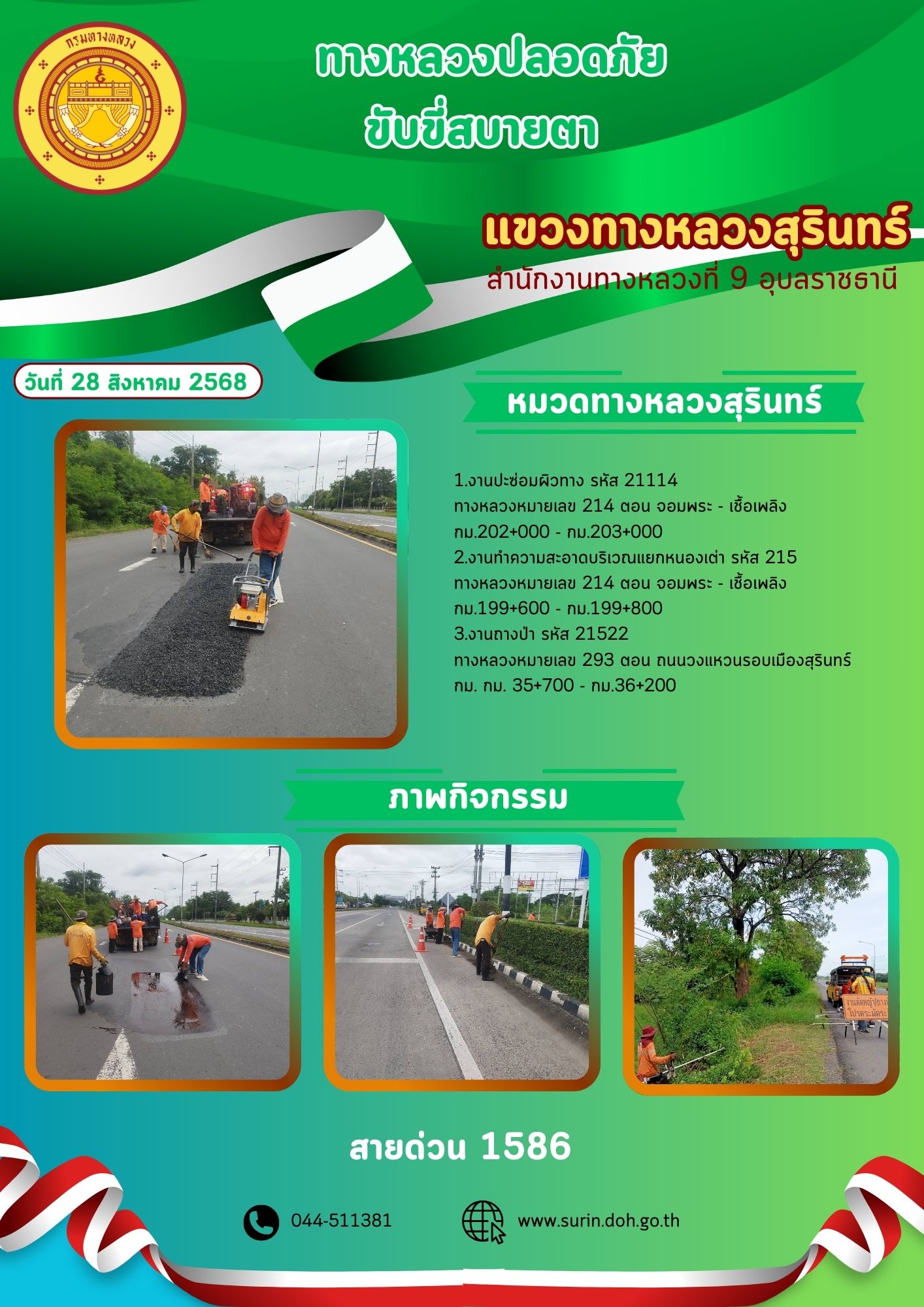 ทางหลวงปลอดภัย ขับขี่สบายตา 28 สิงหาคม 2568 |