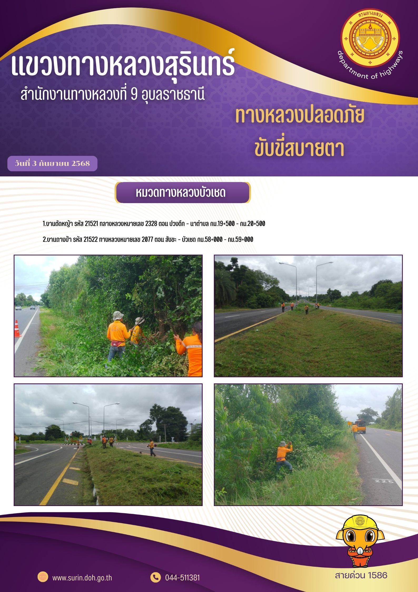 ทางหลวงปลอดภัย ขับขี่สบายตา 3 กันยายน 2568 |