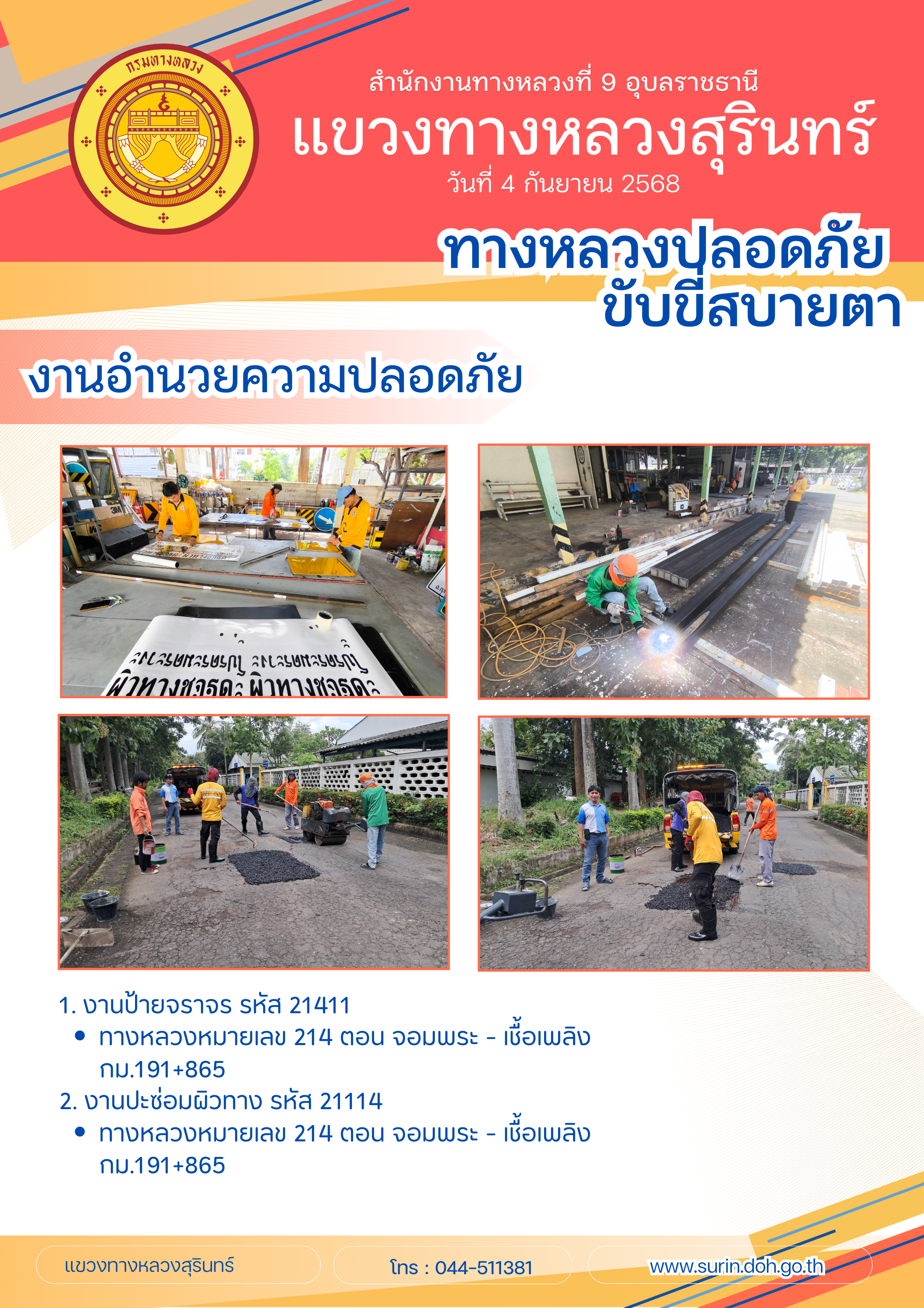ทางหลวงปลอดภัย ขับขี่สบายตา 4 กันยายน 2568 |