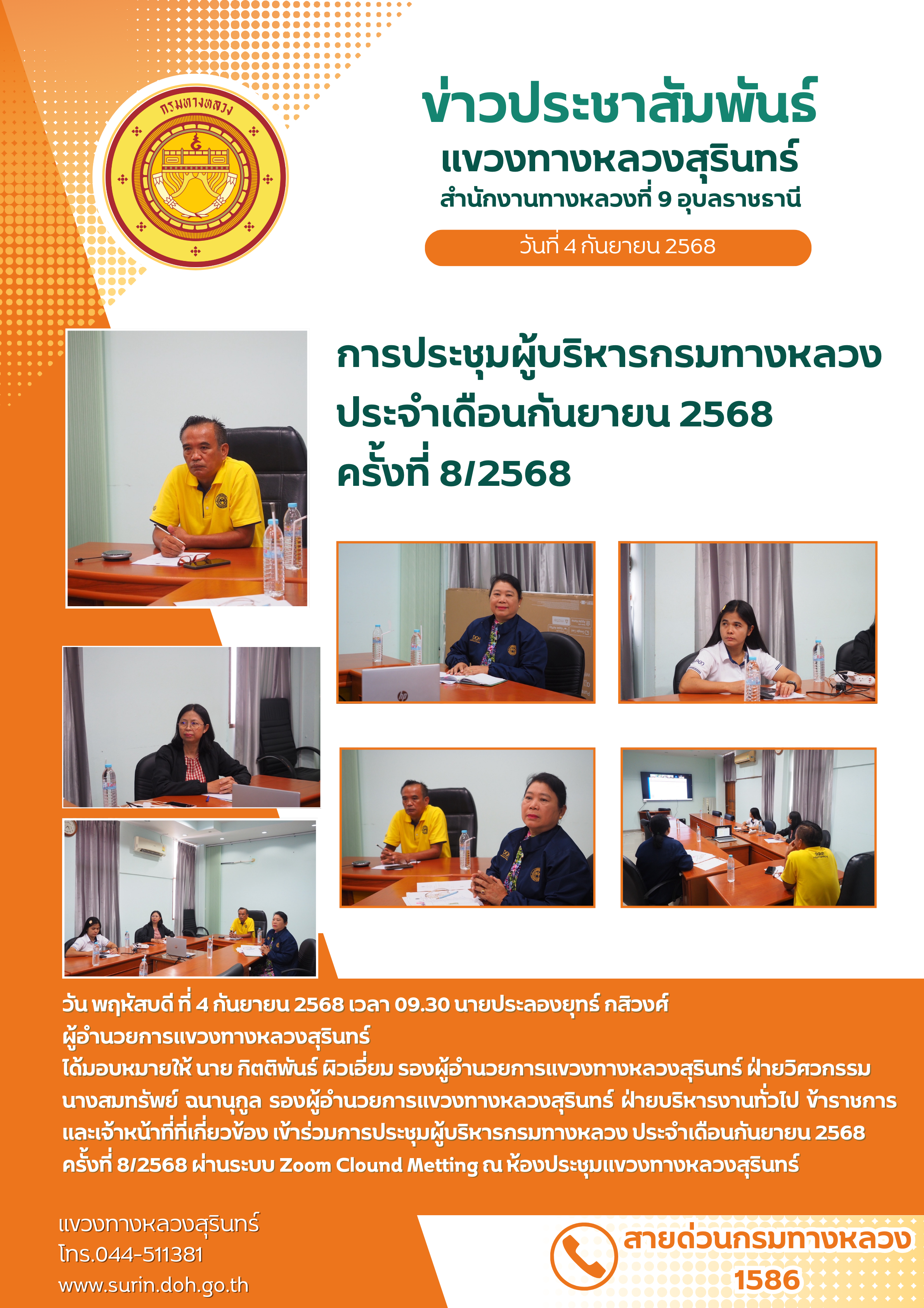 การประชุมผูู้บริหารกรมทางหลวง ประจำดือนกันยายน 2568 ครั้งที่ 8/2568 |