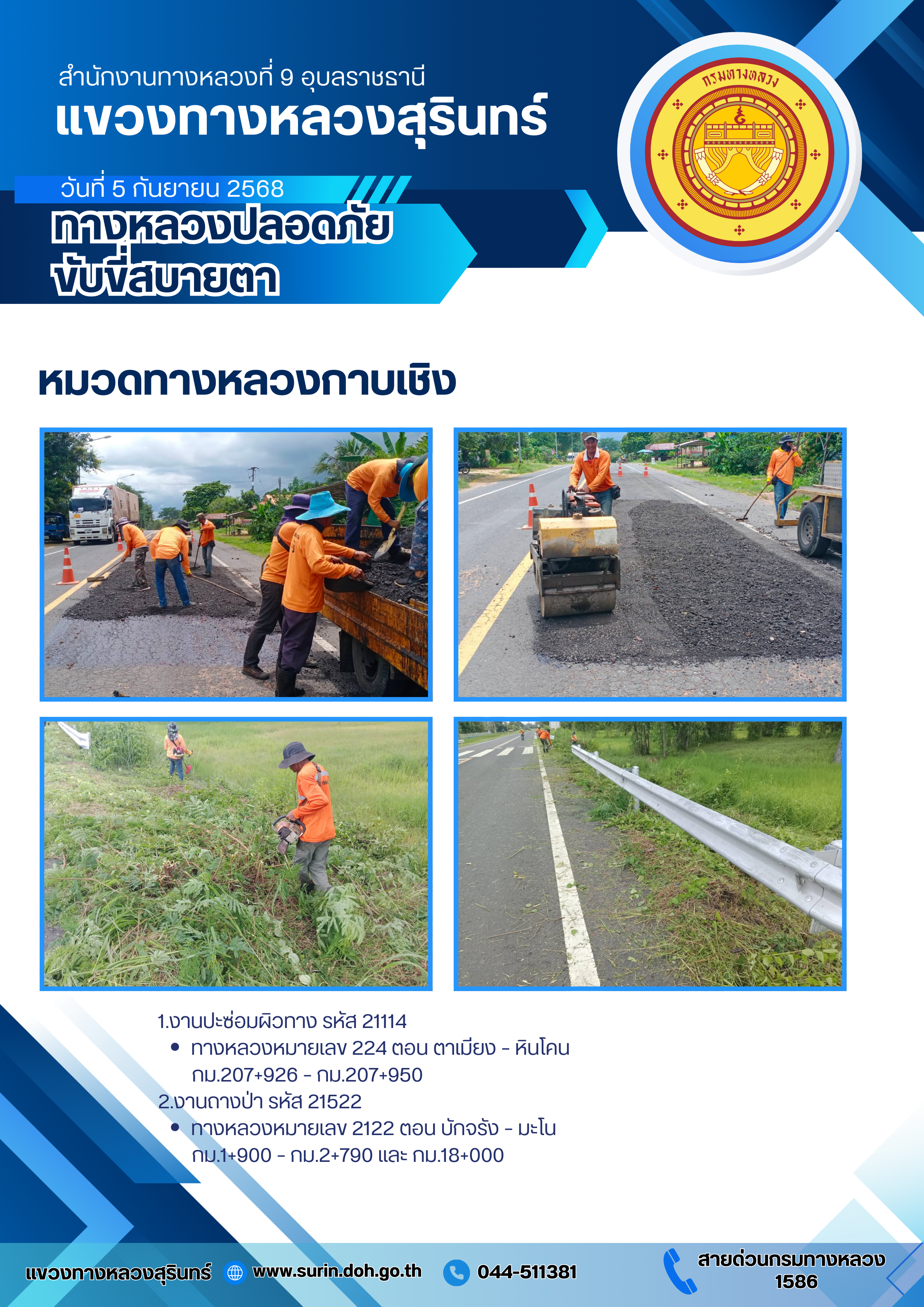 ทางหลวงปลอดภัย ขับขี่สบายตา 5 กันยายน 2568 |