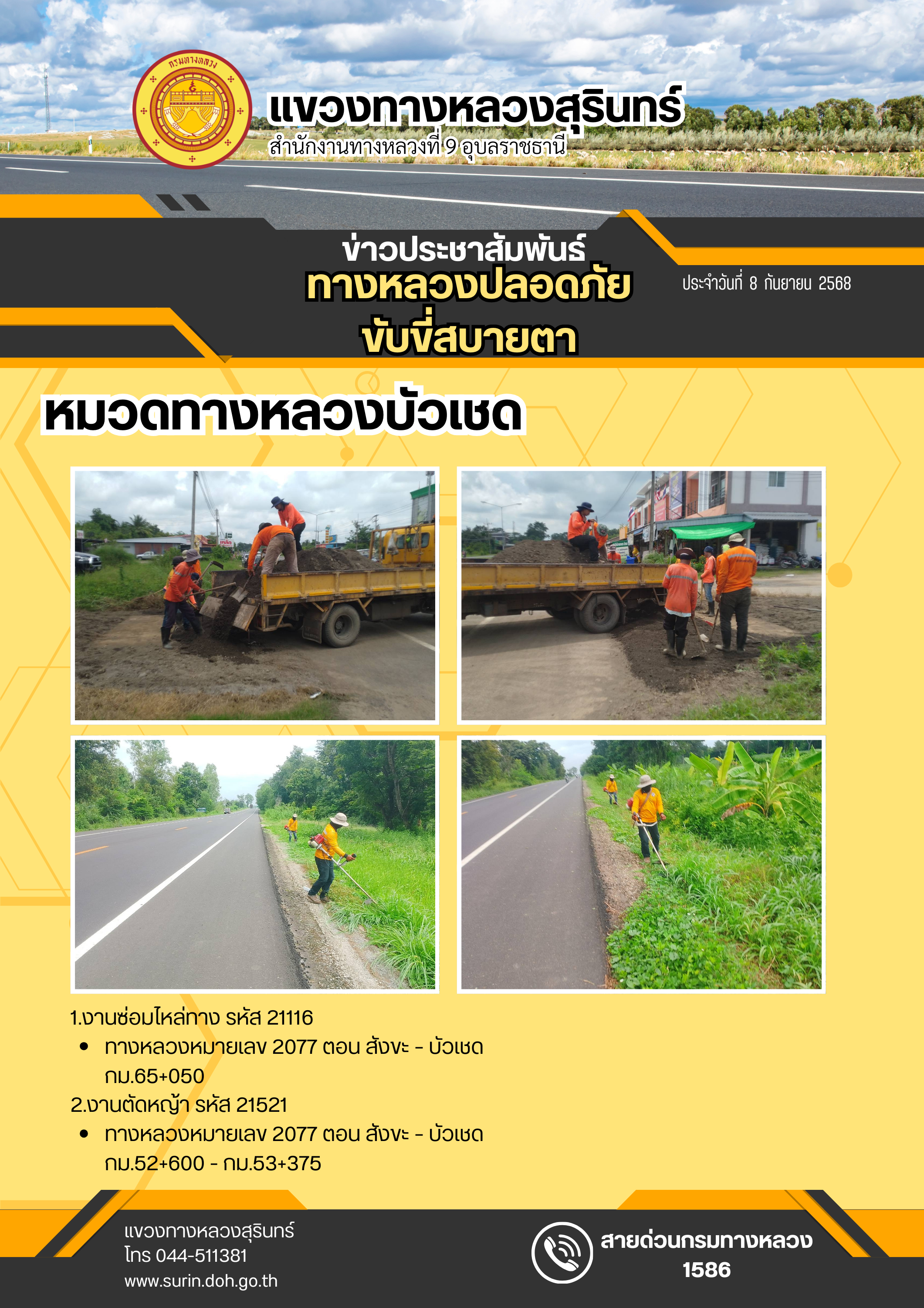 ทางหลวงปลอดภัย ขับขี่สบายตา 8 กันยายน 2568 |