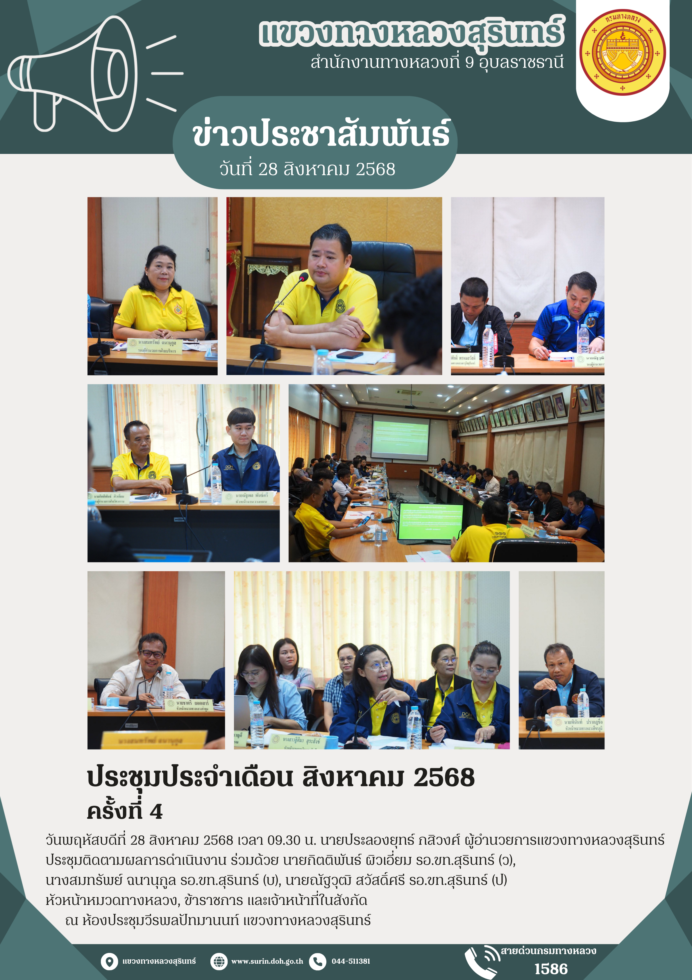 ประชุมประจำเดือนสิงหาคม 2568 (ครั้งที่ 4/2568) |