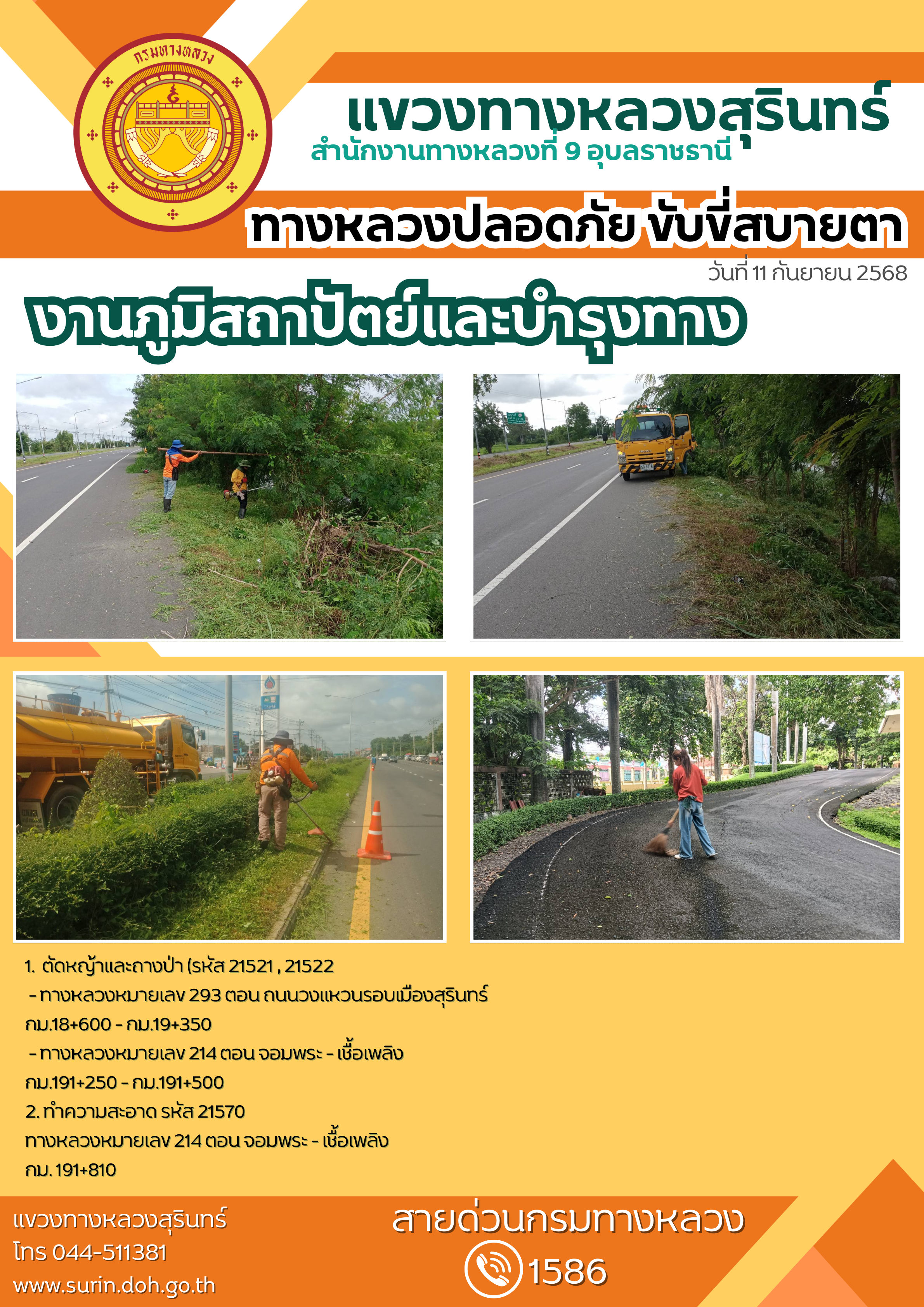 ทางหลวงปลอดภัย ขับขี่สบายตา 11 กันยายน 2568 |