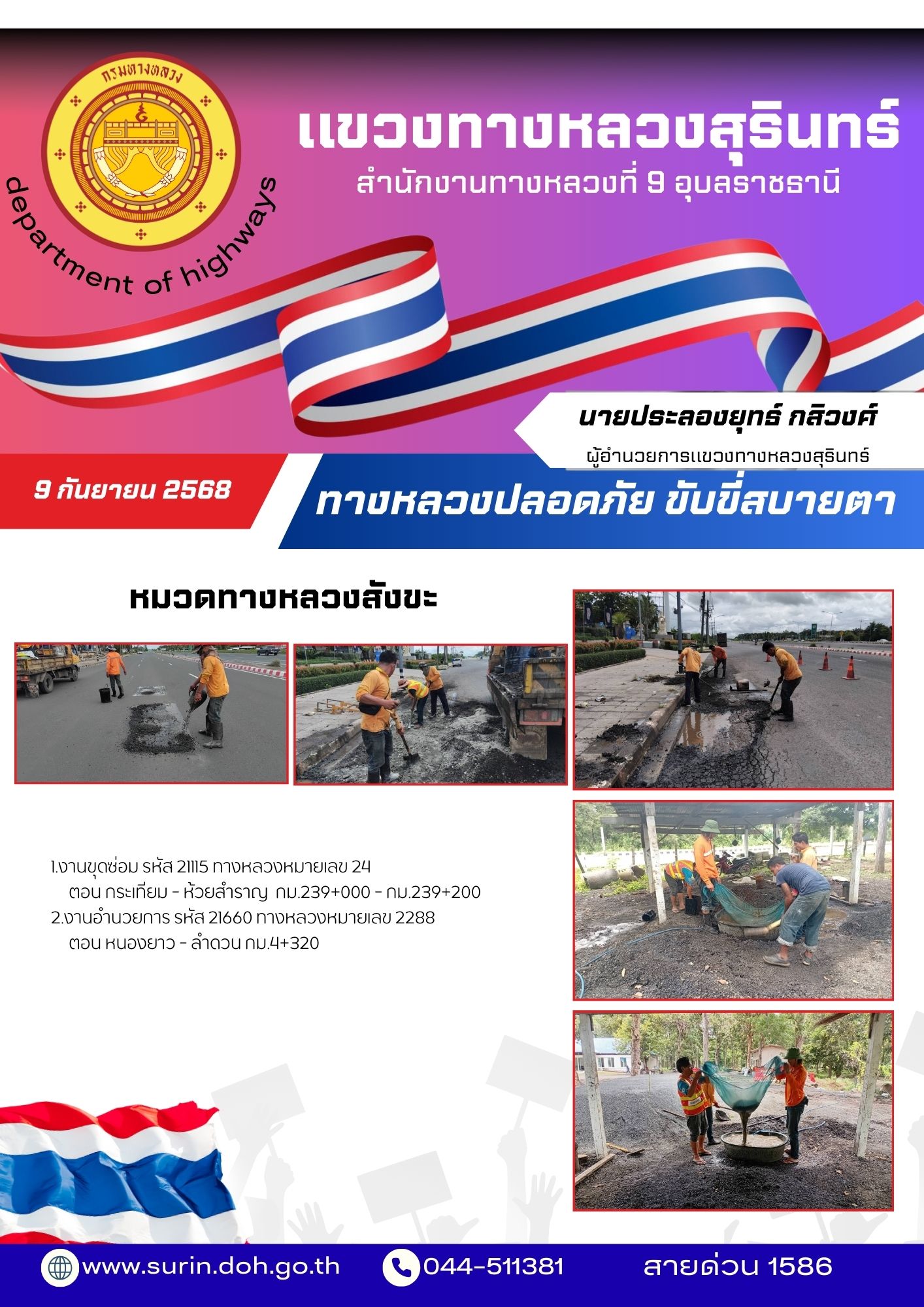 ทางหลวงปลอดภัย ขับขี่สบายตา 9 กันยายน 2568 |