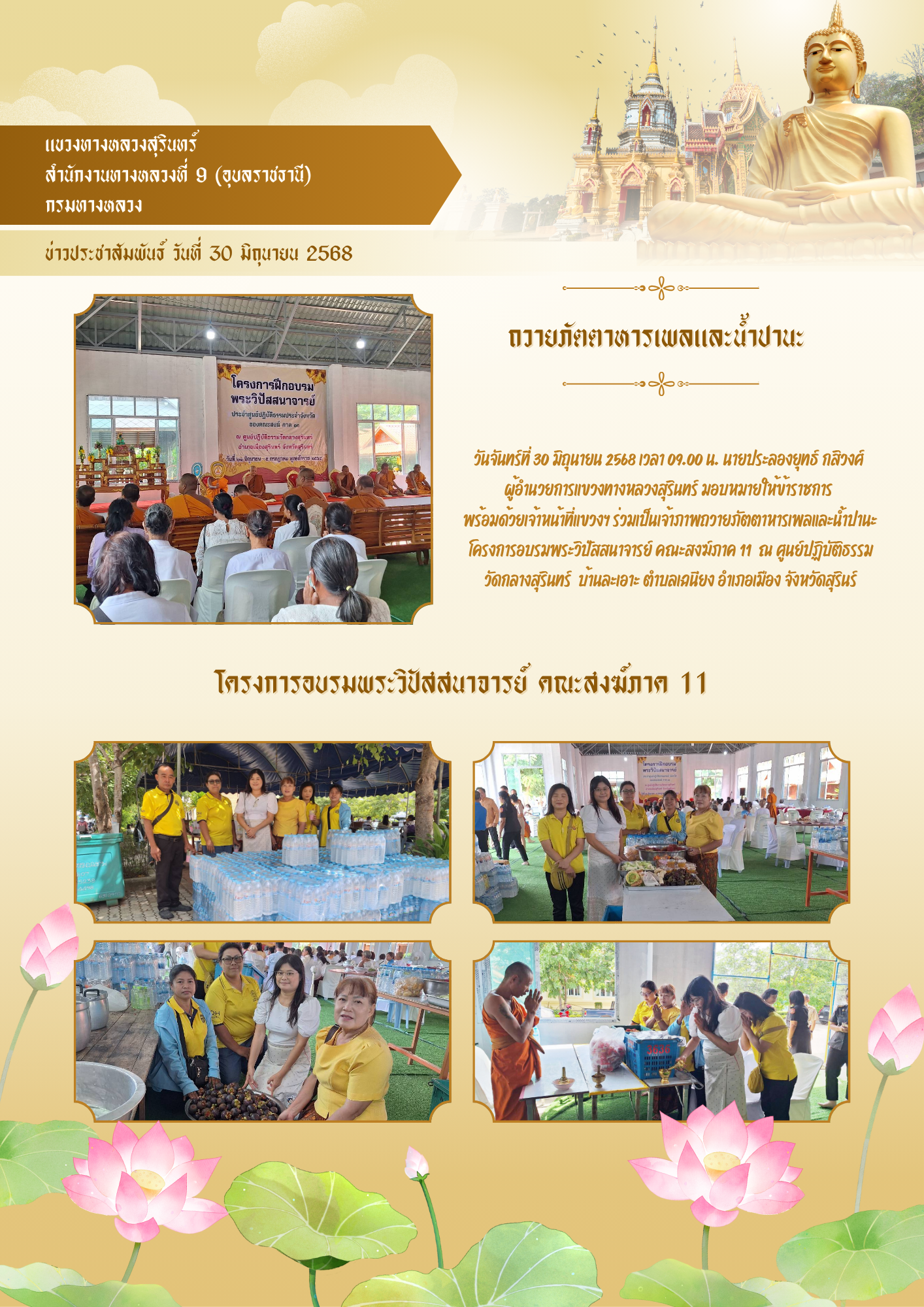 ร่วมเป็นเจ้าภาพถวายภัตตาหารเพลและน้ำปานะ โครงการอบรมพระวิปัสสนาจารย์ คณะสงฆ์ภาค 11