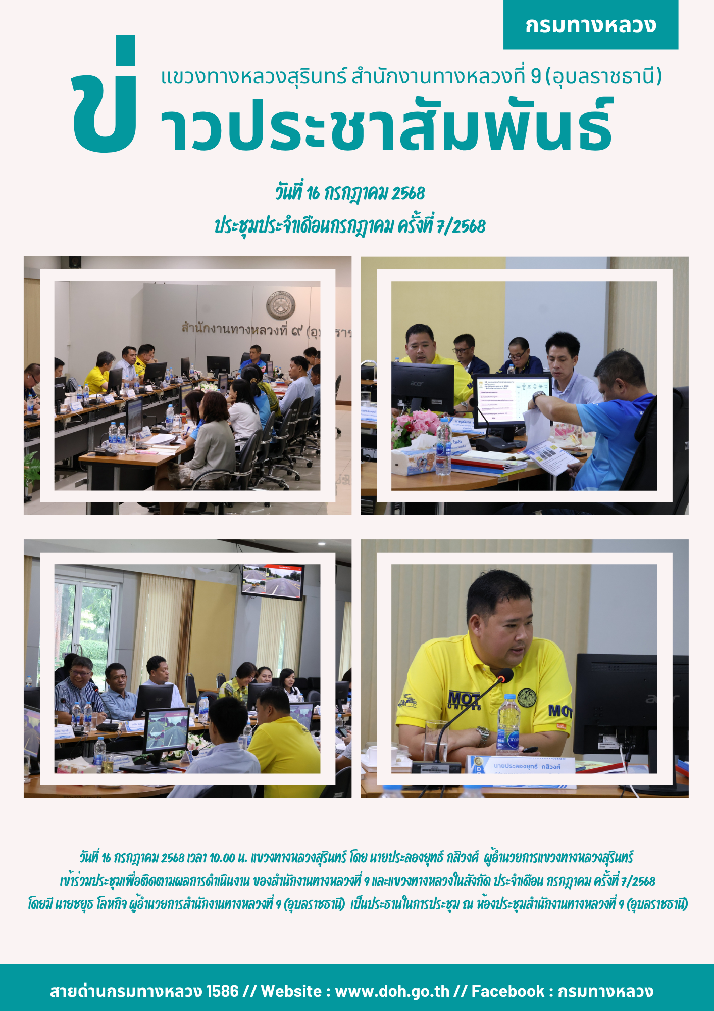ประชุมเพื่อติดตามผลการดำเนินงาน ของสำนักงานทางหลวงที่ 9