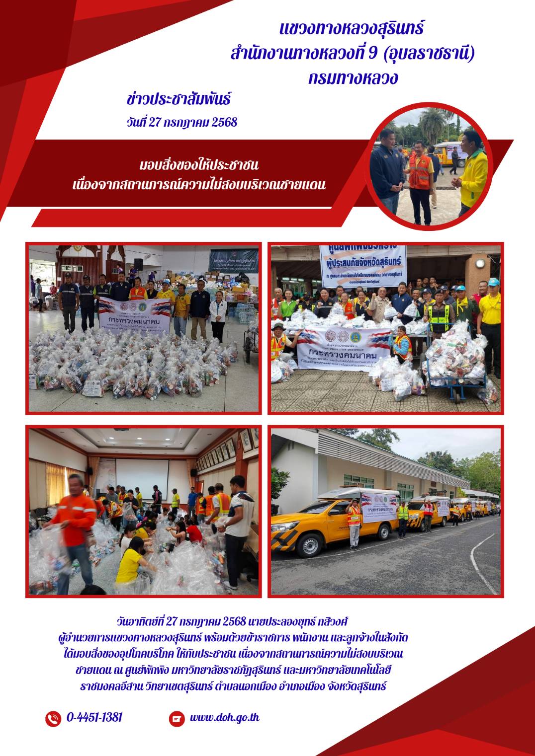 มอบสิ่งของอุปโภคบริโภค ให้กับประชาชน เนื่องจากสถานการณ์ความไม่สงบบริเวณชายแดน