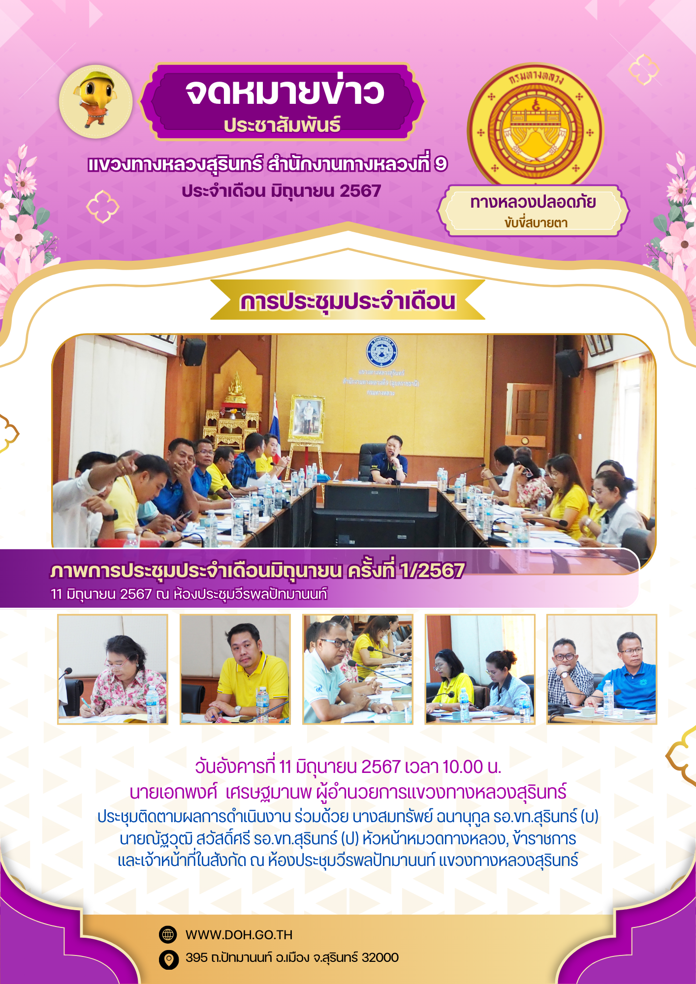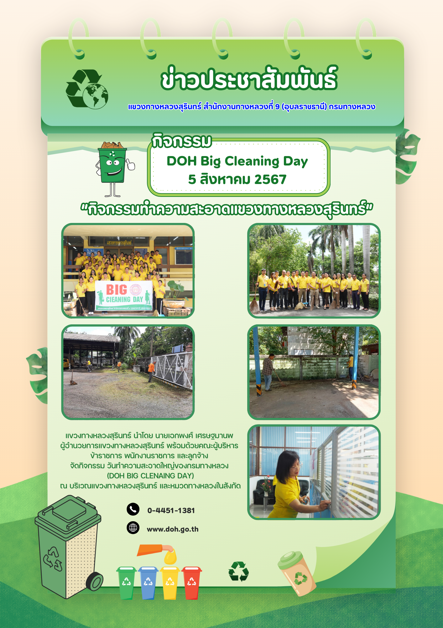 วิสัยทัศน์ : พัฒนาทางหลวงให้ได้มาตรฐาน มุ่งเน้นงานบริการประชาชน สร้างผลงานจากกิจกรรม 5 ส.