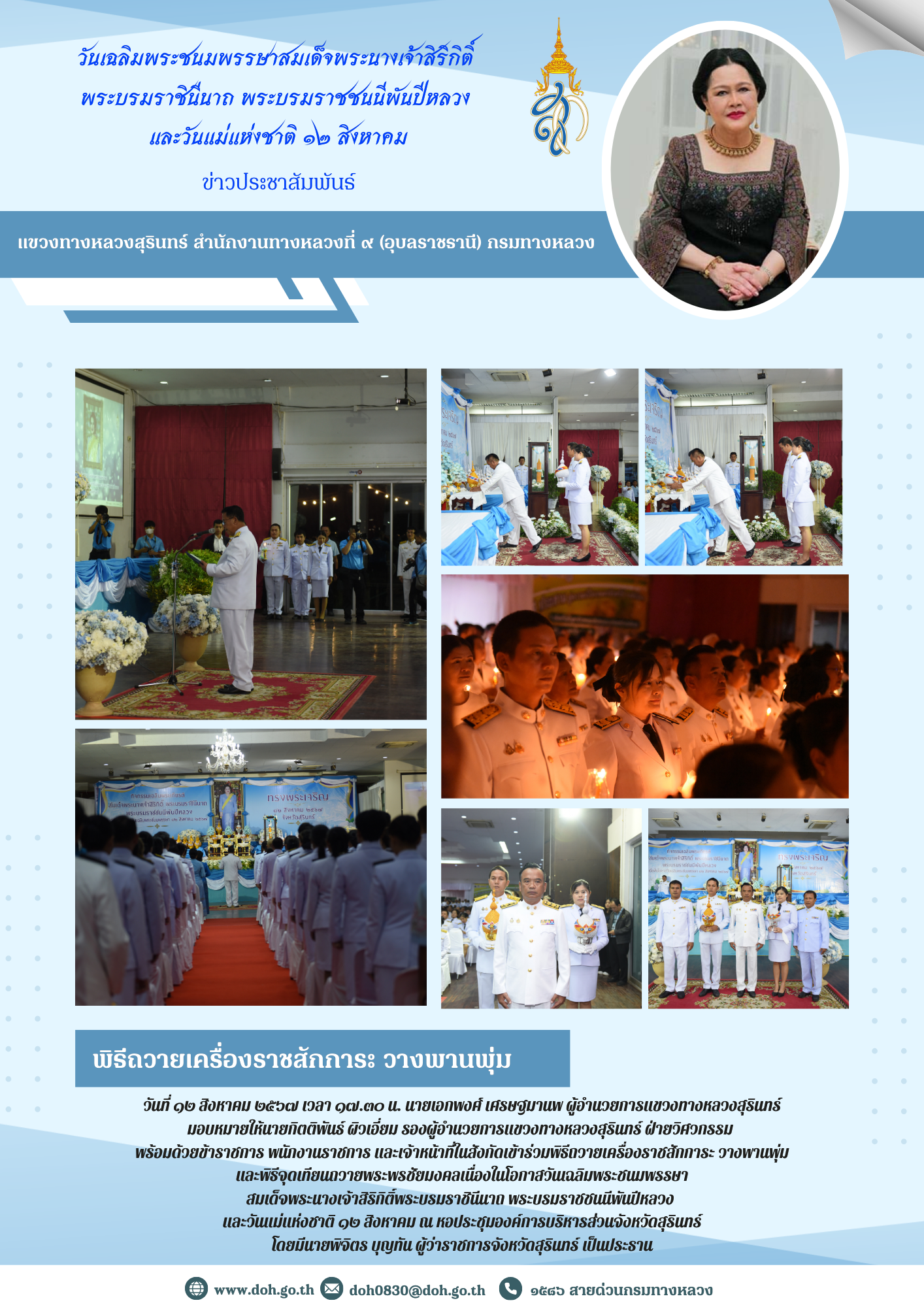 พิธีถวายเครื่องราชสักการะ วางพานพุ่ม และพิธีจุดเทียนถวายพระพรชัยมงคลเนื่องในโอกาสวันเฉลิมพระชนมพรรษา