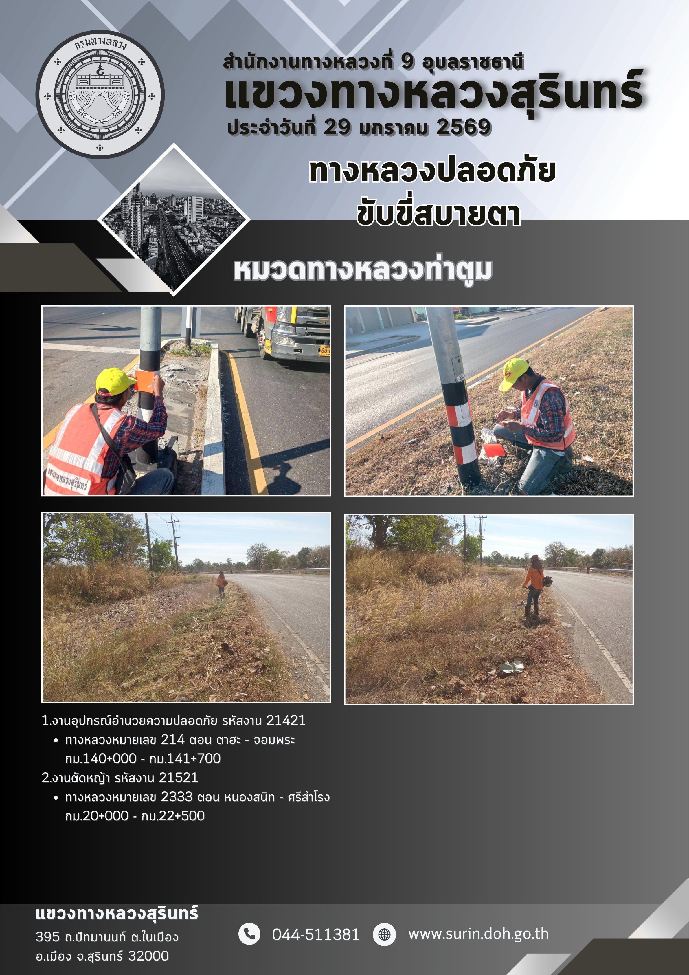 ทางหลวงปลอดภัย ขับขี่สบายตา 29 มกราคม 2569 |