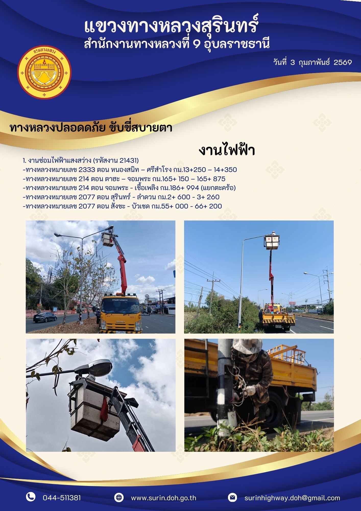 ทางหลวงปลอดภัย ขับขี่สบายตา 3 กุมภาพันธ์ 2569 |