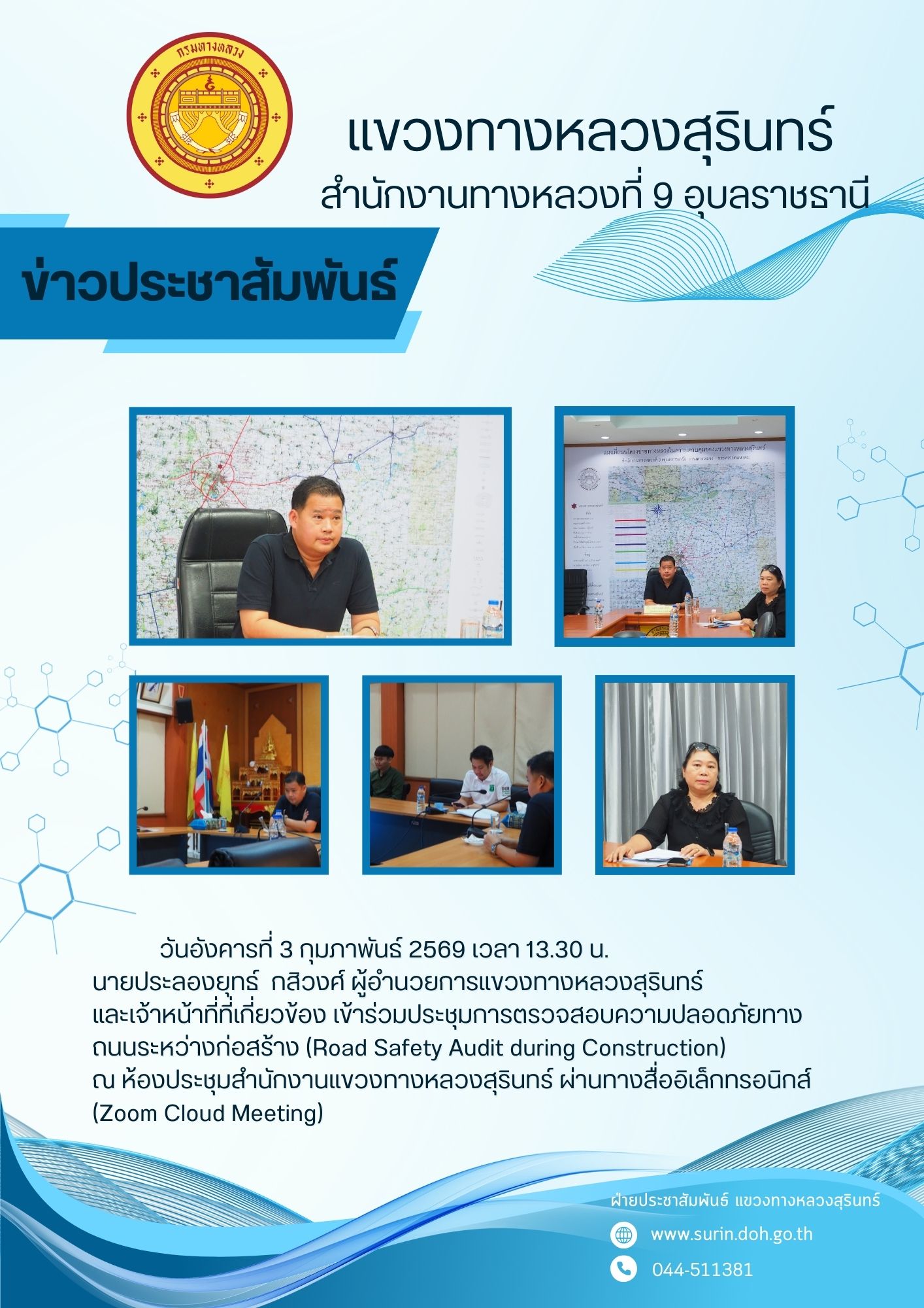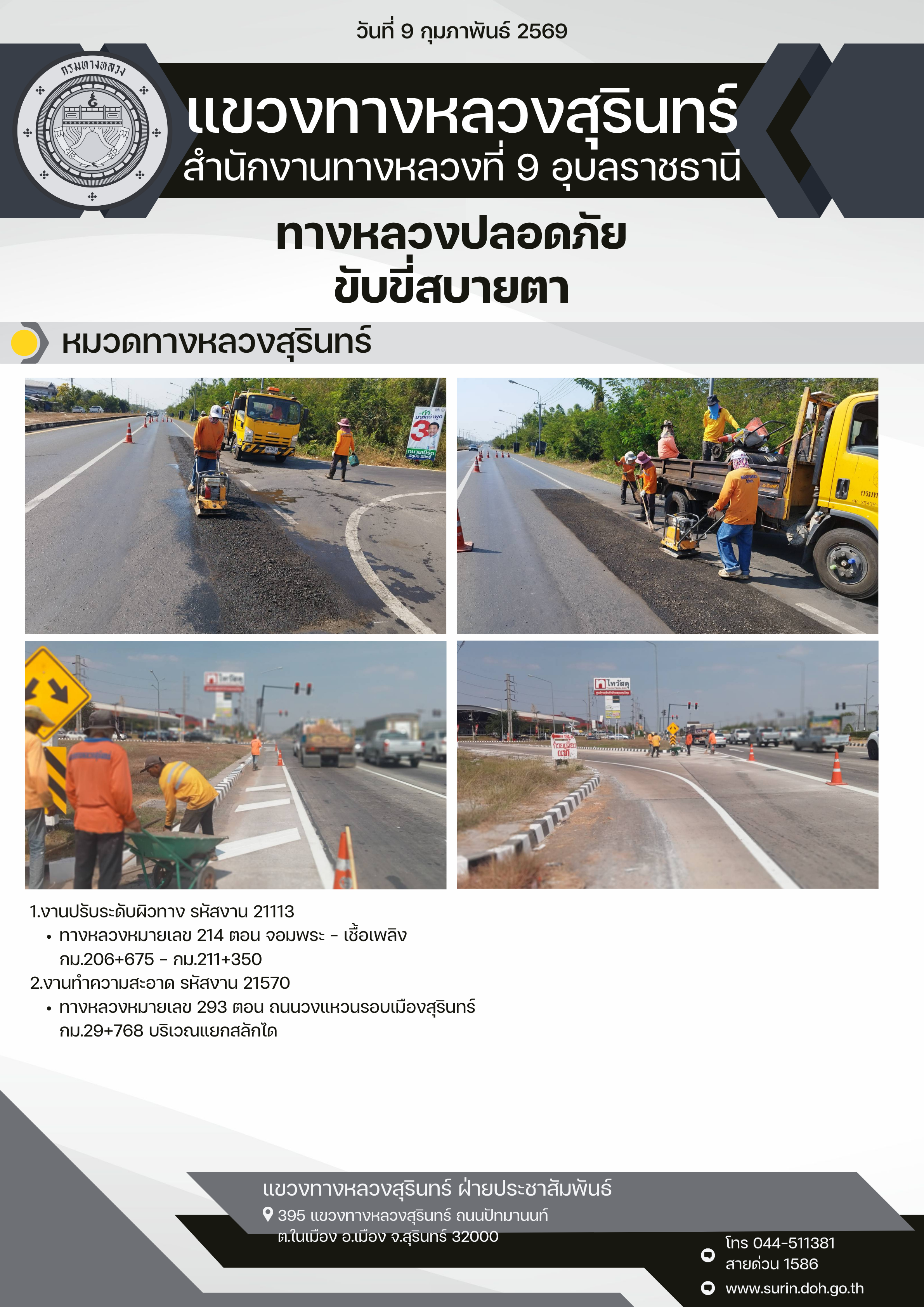 ทางหลวงปลอดภัย ขับขี่สบายตา 9 กุมภาพันธ์ 2569 |