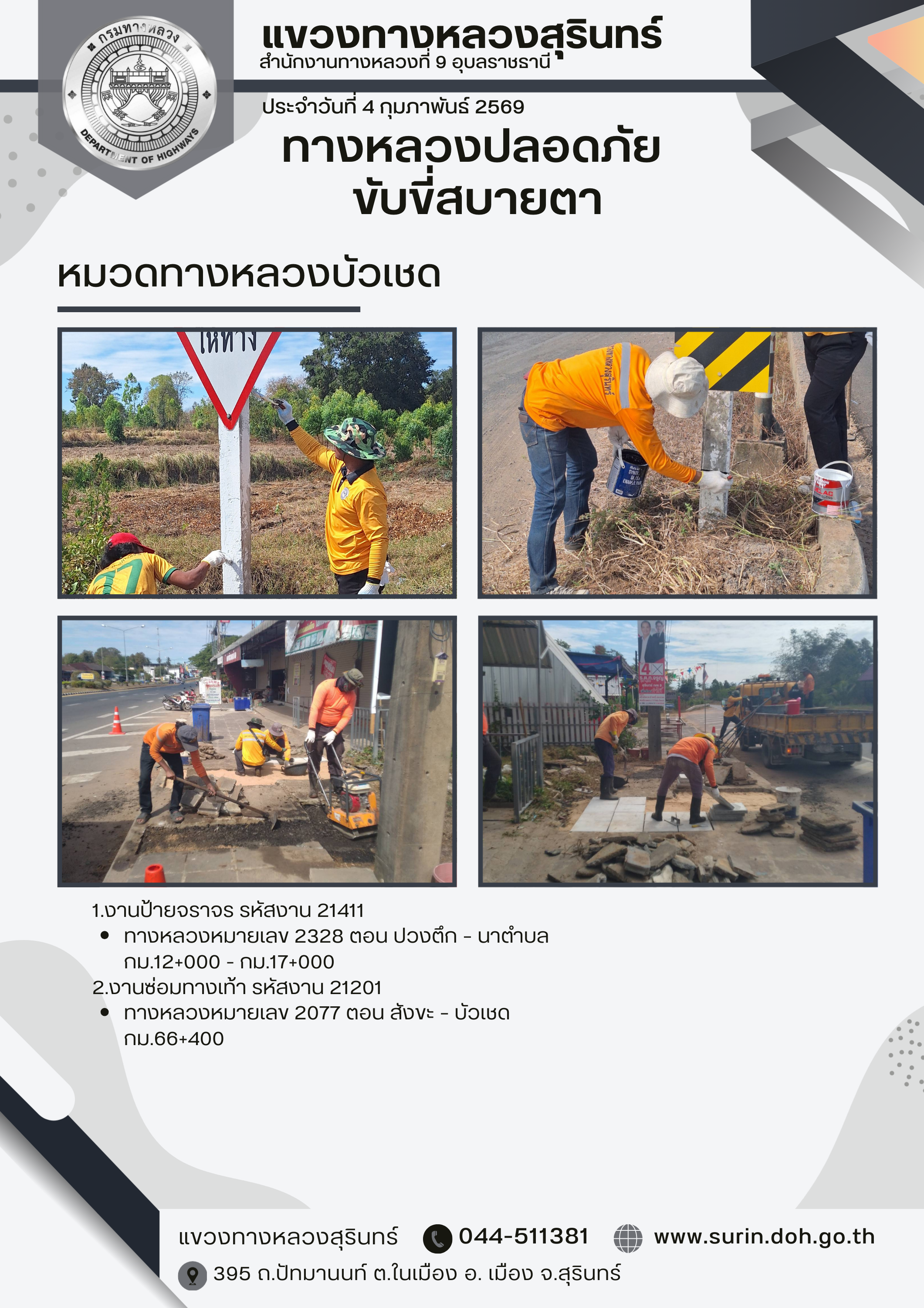 ทางหลวงปลอดภัย ขับขี่สบายตา 4 กุมภาพันธ์ 2569 |