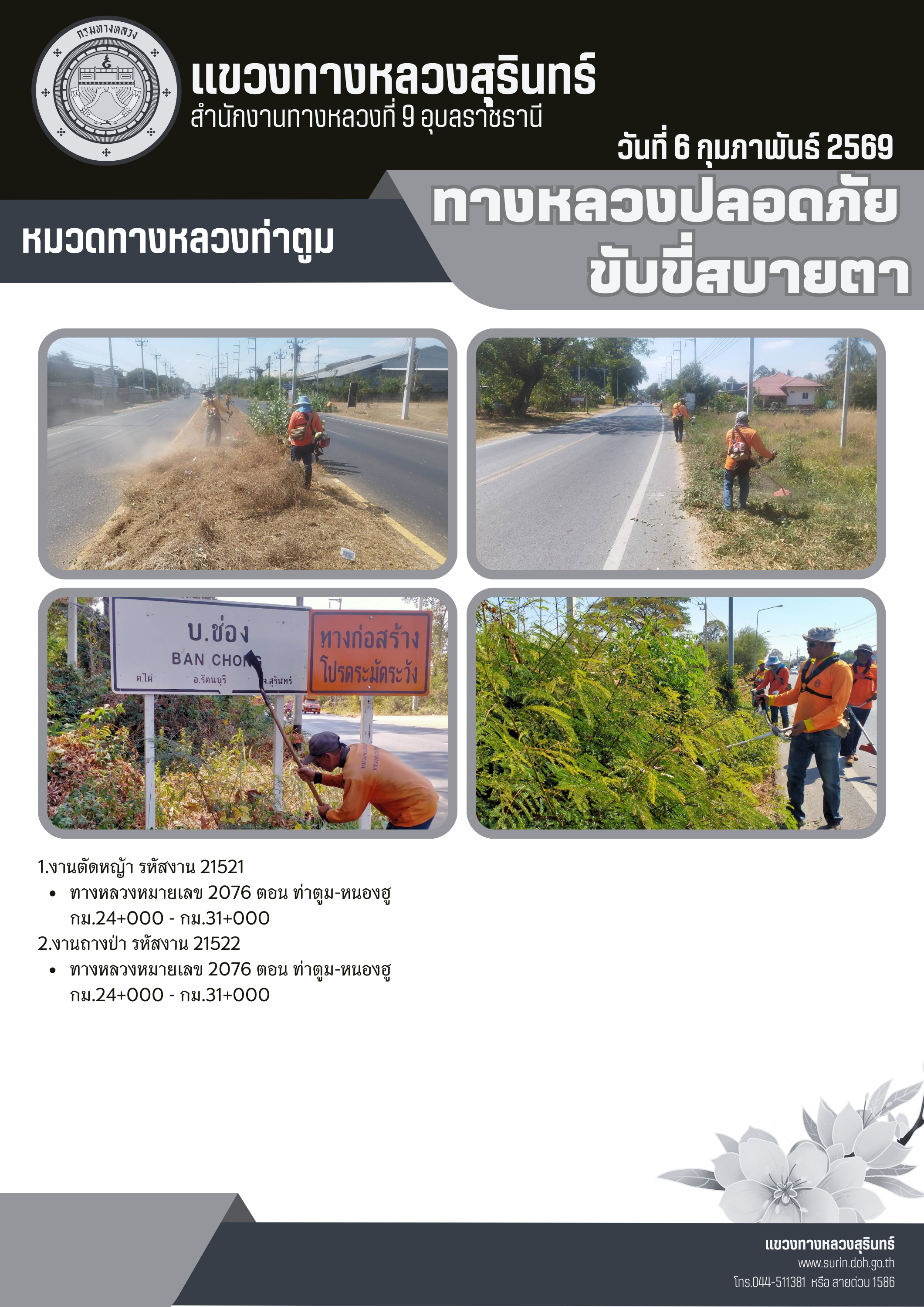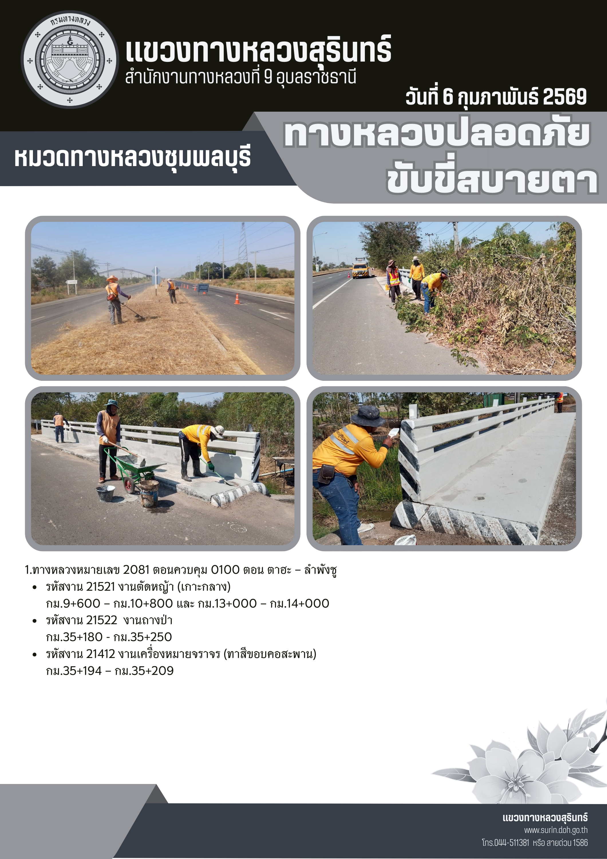 ทางหลวงปลอดภัย ขับขี่สบายตา 6 กุมภาพันธ์ 2569 |