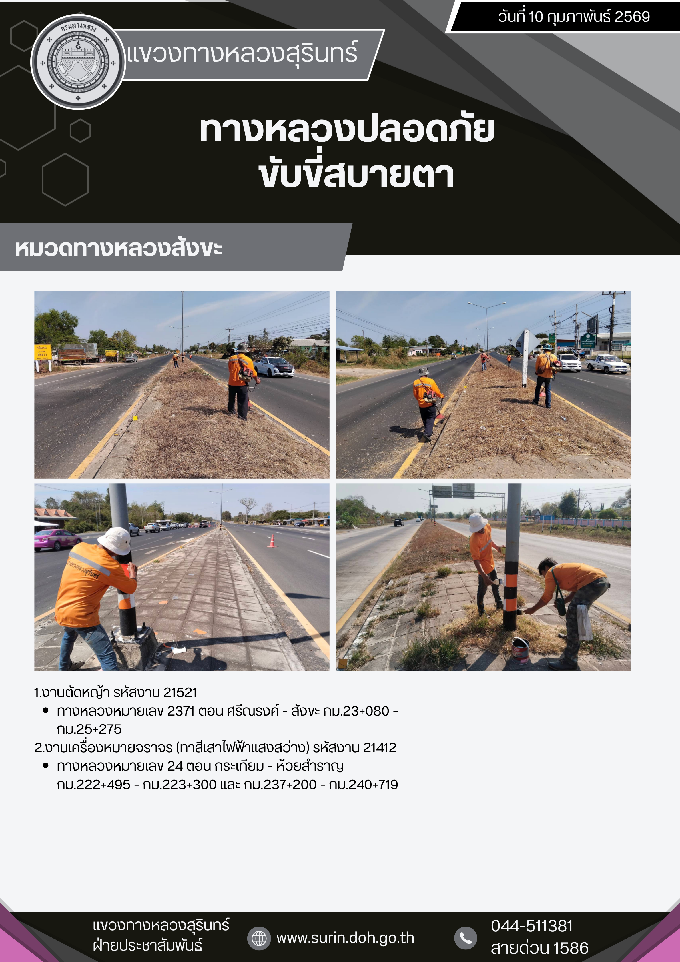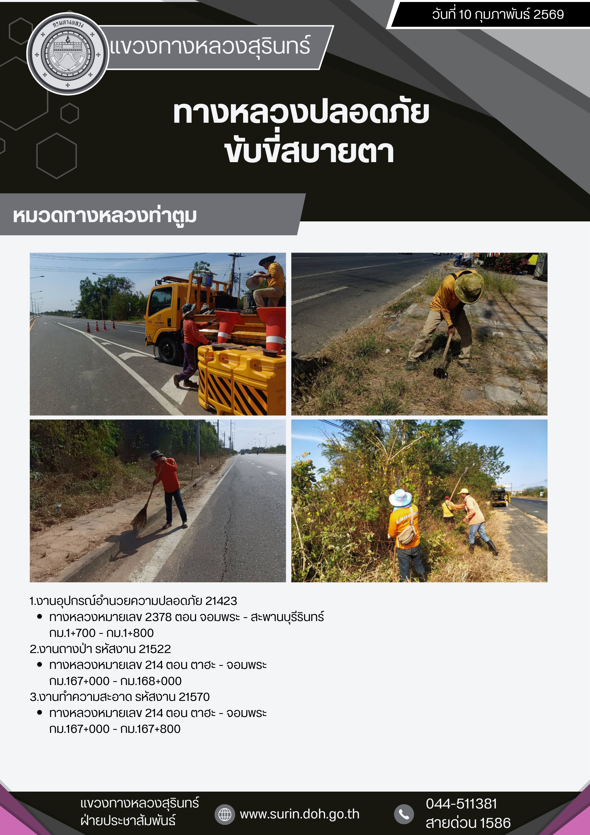 ทางหลวงปลอดภัย ขับขี่สบายตา 10 กุมภาพันธ์ 2569 |